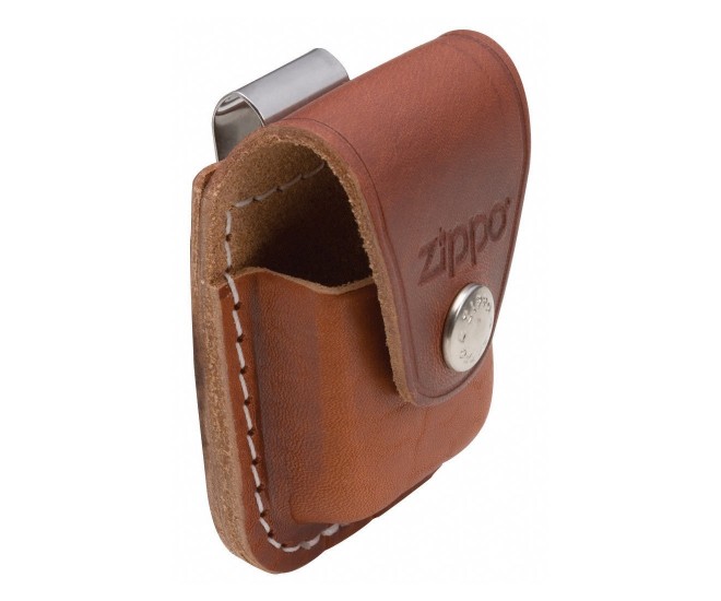 Коричневый кожаный чехол Zippo LPCB для зажигалки, оборудован металлической клипсой для крепления на ремень. Клапан легко, но четко закрывается. Имеет рельефный фирменный логотип Zippo.