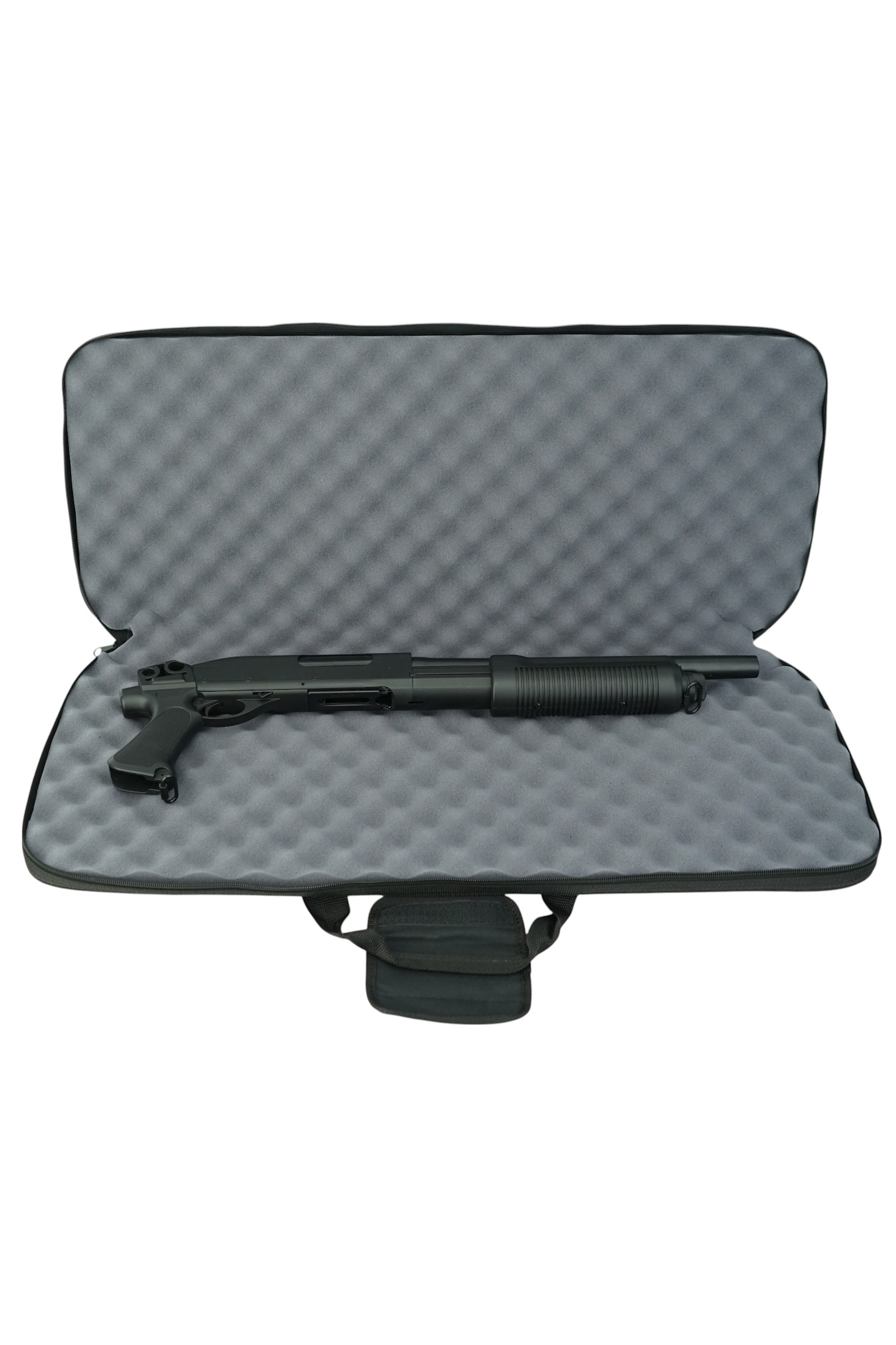 Данный чехол из клетчатой водонепроницаемой синтетической ткани предназначен для хранения и переноски винтовок и ружей размером до 750 x 300 мм. На передней стороне 3 объемных кармана на молнии. В большом кармане на тыльной стороне находятся лямки для переноса чехла за спиной.