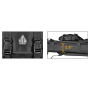 На лицевой части чехла есть один большой, "откидной" внешний карман размером 30 х 74 см (12" х 29"), который имеет внутри два плотно закрываемых липучкой отделения с толстыми стенками, с нашитыми на них стропами molle по 40 ячеек для размещения внутри набора подсумков молле.