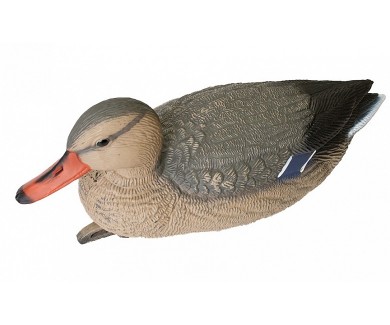 Имеет киль, повышающий устойчивость муляжа при ветре. В киле есть отверстие для верёвки, на которую можно нанизать чучела для осуществления манёвров на месте охоты или транспортировки. Также через отверстие киля на небольшой глубине или у края водоёма можно закрепить леску с грузом, который размещён на дне водоема, для придания утке статичного положения на поверхности воды или подвесить груз для ограничения передвижения по воде.