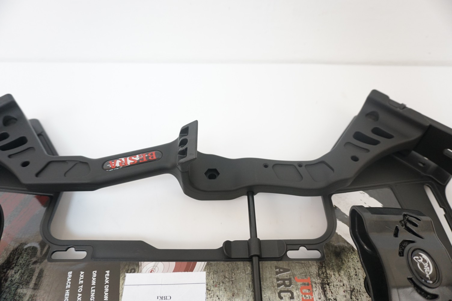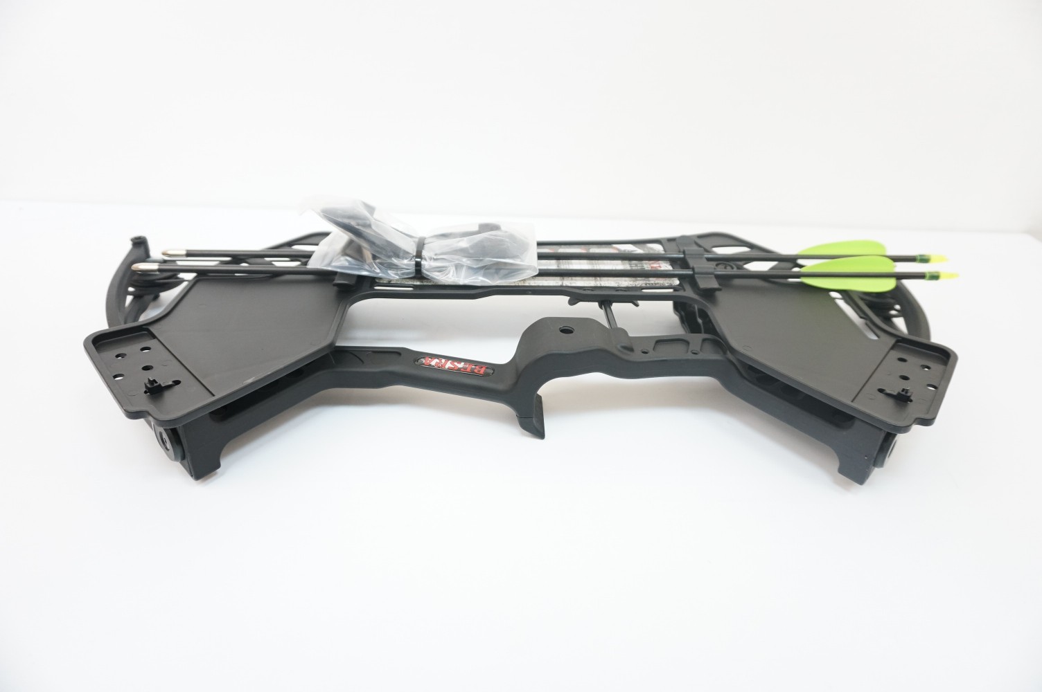 Рама лука изготовлена из пластика отличного качества, прорезиненные плечи соединены с ней втулками из стали. Тетива изготовлена из стальных нитей с полимерной оболочкой. Длина изделия 63,5 см при малом весе в 1 кг, оно комплектуется прицелом, двумя стрелами, а также такими необходимыми деталями, как кивер с крагой, полочка для прицеливания и защита для пальцев.