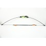 Основной материал изделия – это качественный полимер, стрелы из комплекта изготовлены из фибергласса. Плечи из текстолита обеспечивают равномерное натяжение тетивы и хорошую сбалансированность оружия. На рукоятке предусмотрены резиновые вставки, препятствующие соскальзыванию руки во время выстрела. Общий вес лука составляет 0,5 кг, в комплекте поставляются две фирменных стрелы, колчан, полочка, крага и напальчник.