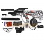 В комплект входит набор тюнинга из различных насадок, прицела двух магазинов с разной ёмкостью. Обычный магазин смотрится более "реалистично", а второй (барабанного типа) вмещает в себя до 500 шариков орбиз, чего хватает на целую игру при умеренном темпе стрельбы.