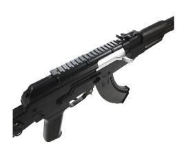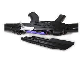 В комплект входит коллиматорный прицел, который при желании можно снять и попробовать стрелять при помощи базовых прицельных приспособлений. На планки Пикатинни-Вивера можно установить дополнительное навесное оборудование.складной приклад.