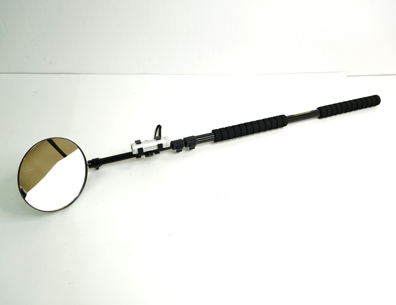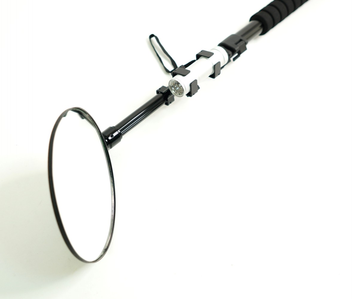 ДУ-101 - инспекционное зеркало на телескопической (раздвижной) штанге, оснащенное встроенным осветителем. Предназначено для визуального контроля труднодоступных мест, скрытых полостей и предметов, непосредственный осмотр которых затруднен или не возможен в силу их расположения: вблизи земли, между стационарными конструкциями или выше роста человека.