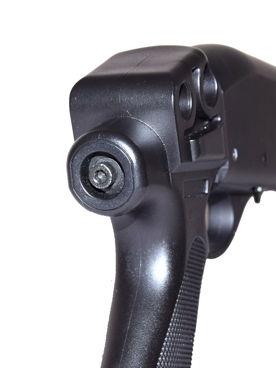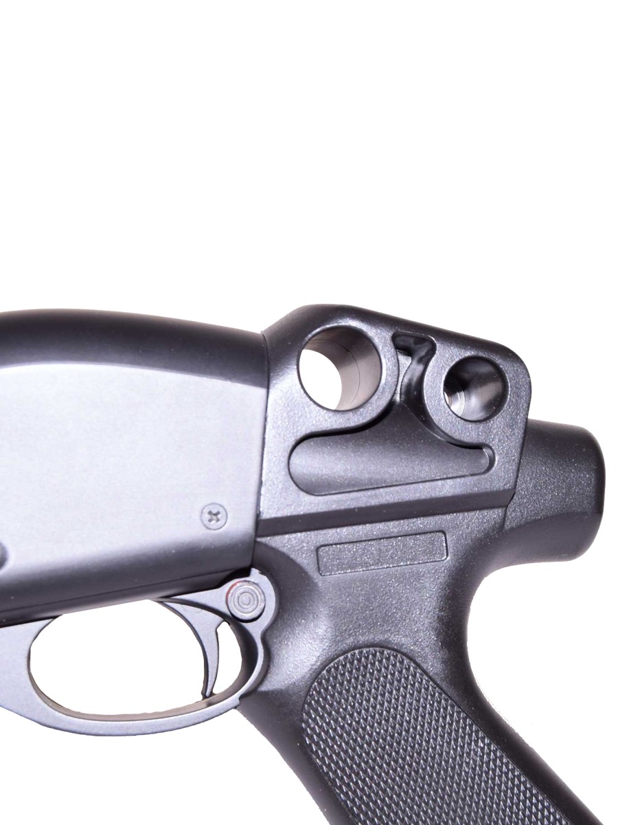 Пружинная модификация дробовика Ремингтон М870 от бренда Цима изготовлена из алюминиевого сплава и стойкого к повреждениям пластика ABS. Важная характеристика этого карабина – отсутствие приклада, за счет чего модель отличается максимально компактными габаритами, ее длина 64 см, вес 1,5 кг.