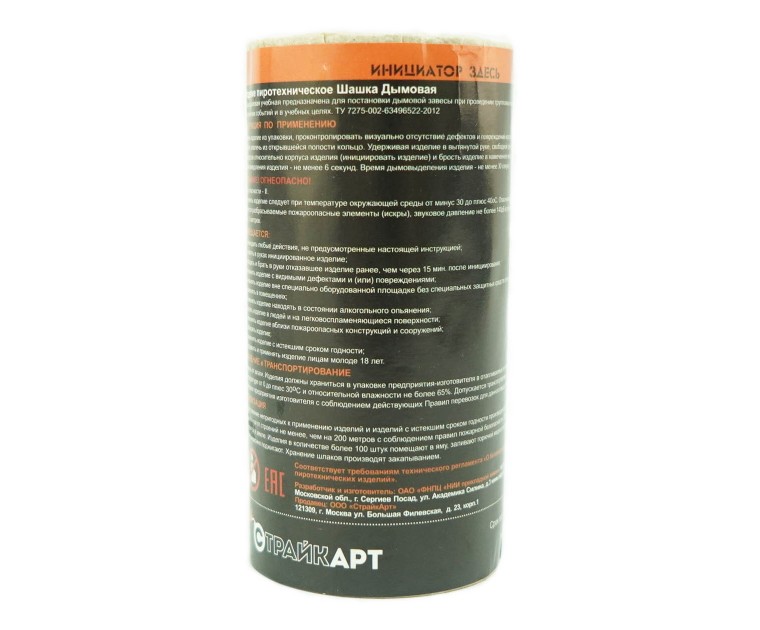 Дымовая шашка ШД 90 для любителей внезапных и красивых штурмов укреплений. Представляет собой картонный цилиндр черного цвета с вытяжной нитью от капсюля воспламенителя, которая изначально закрыта пергаментной бумагой. Время задержки - 3 секунды. Вес дымовой смеси составляет 90 грамм, что в совокупности с приемлемой ценой делает ШД90 лидером в своей группе.