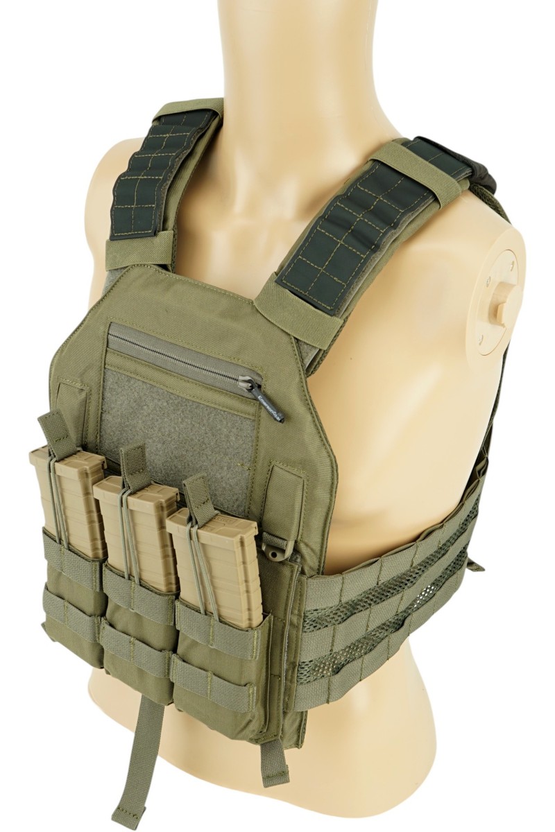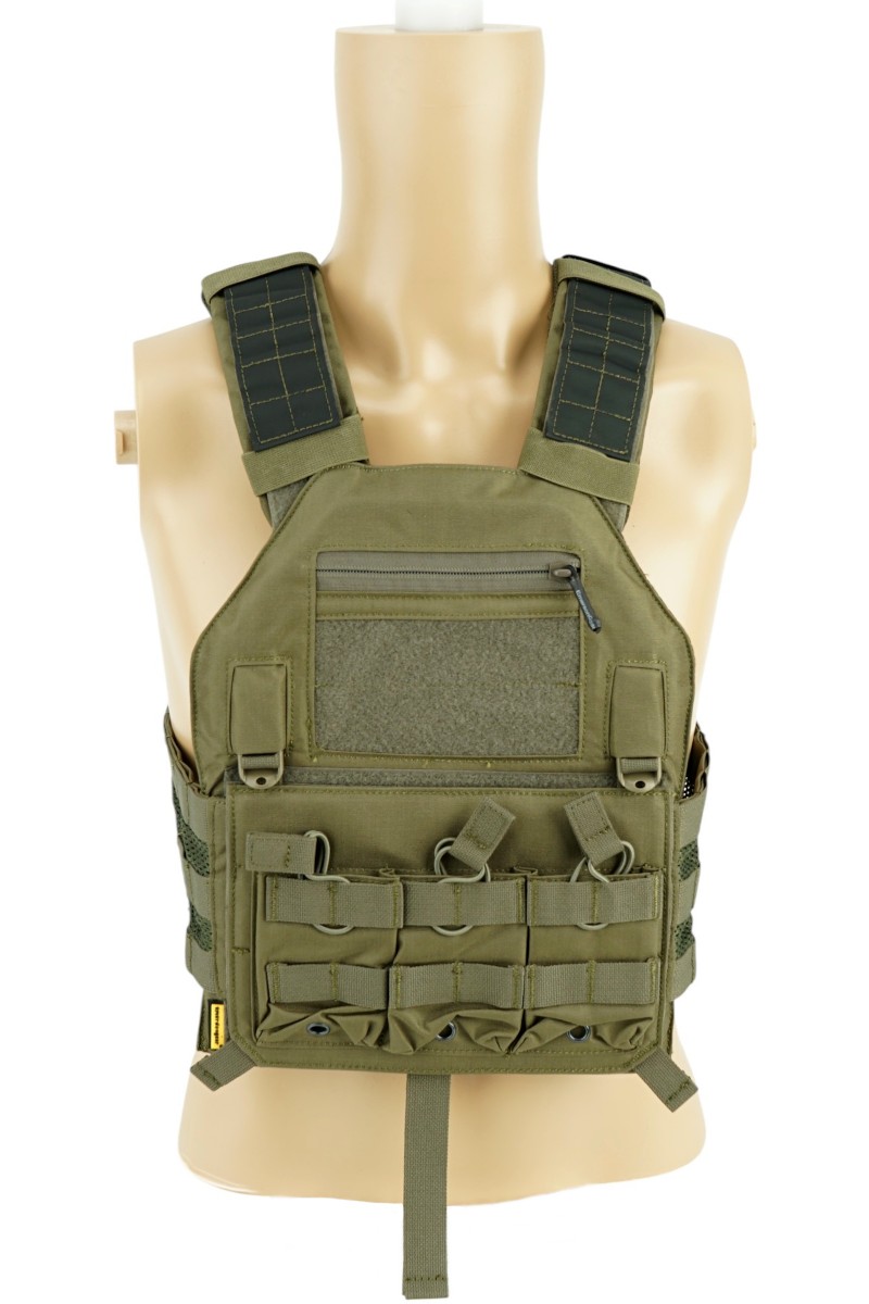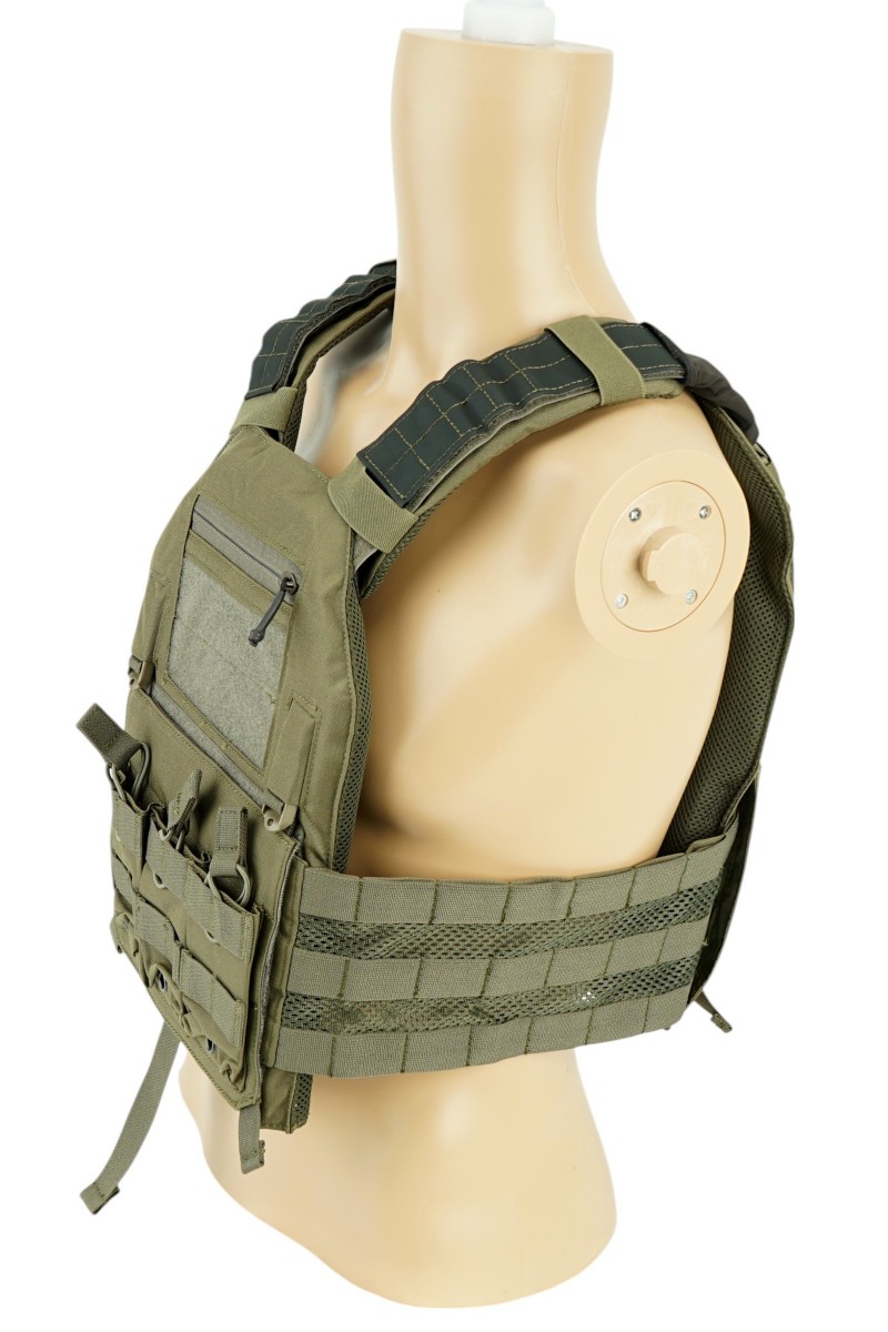 EmersonGear 420 Plate Carrier имеет универсальный размер, который регулируется в зависимости от комплекции бойца. Задняя панель оборудована вентиляционными отверстиями, обеспечивающими комфортное использование даже в условиях повышенной температуры. На передней панели предусмотрены крепления MOLLE для установки подсумков и дополнительного снаряжения. Внутренняя сторона жилета покрыта мягким материалом, предотвращающим натирание кожи.