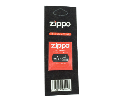 Фитиль Zippo в блистерной упаковке. В упаковке один фитиль, состоит он из плетеных не синтетических и медных волокон, образуя тонкий шнурок. В бензиновой зажигалке фитиль выполняет функцию вывода и дозатора из ватного отсека паров бензина, которые равномерно сгорают на отрезке фитиля. Фитиль это долгосрочный расходный материал и меняется редко, в зависимости от личного использования зажигалки.