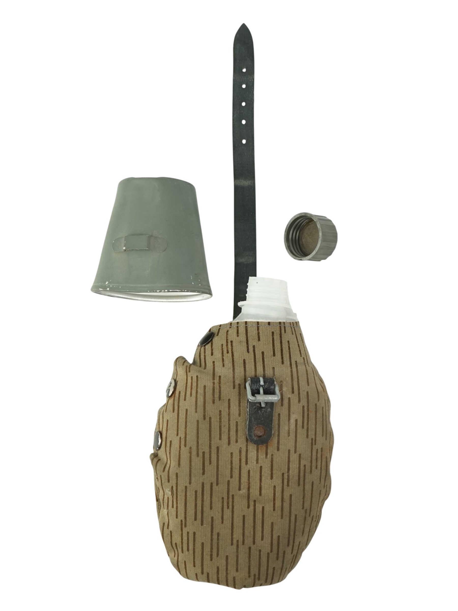 Фляжка армейская оригинал термопластиковая для армии ГДР. Объём фляжки - 700 мл. Сверху алюминиевая кружка со складными ручками, окрашенная в серый, ёмкость кружки 250 мл. Имеет легкий вес и компактную форму. Такие фляги использовались до падения германской стены.