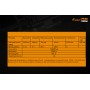 | Время работы и режимы: | Высокий 1350 лм (1,5 часа), средний 500 лм (6 часов), минимальный 150 лм (20 часов), экономичный 10 лм (430 часов), стробоскоп 1350 лм (3 часа), SOS 500 лм |