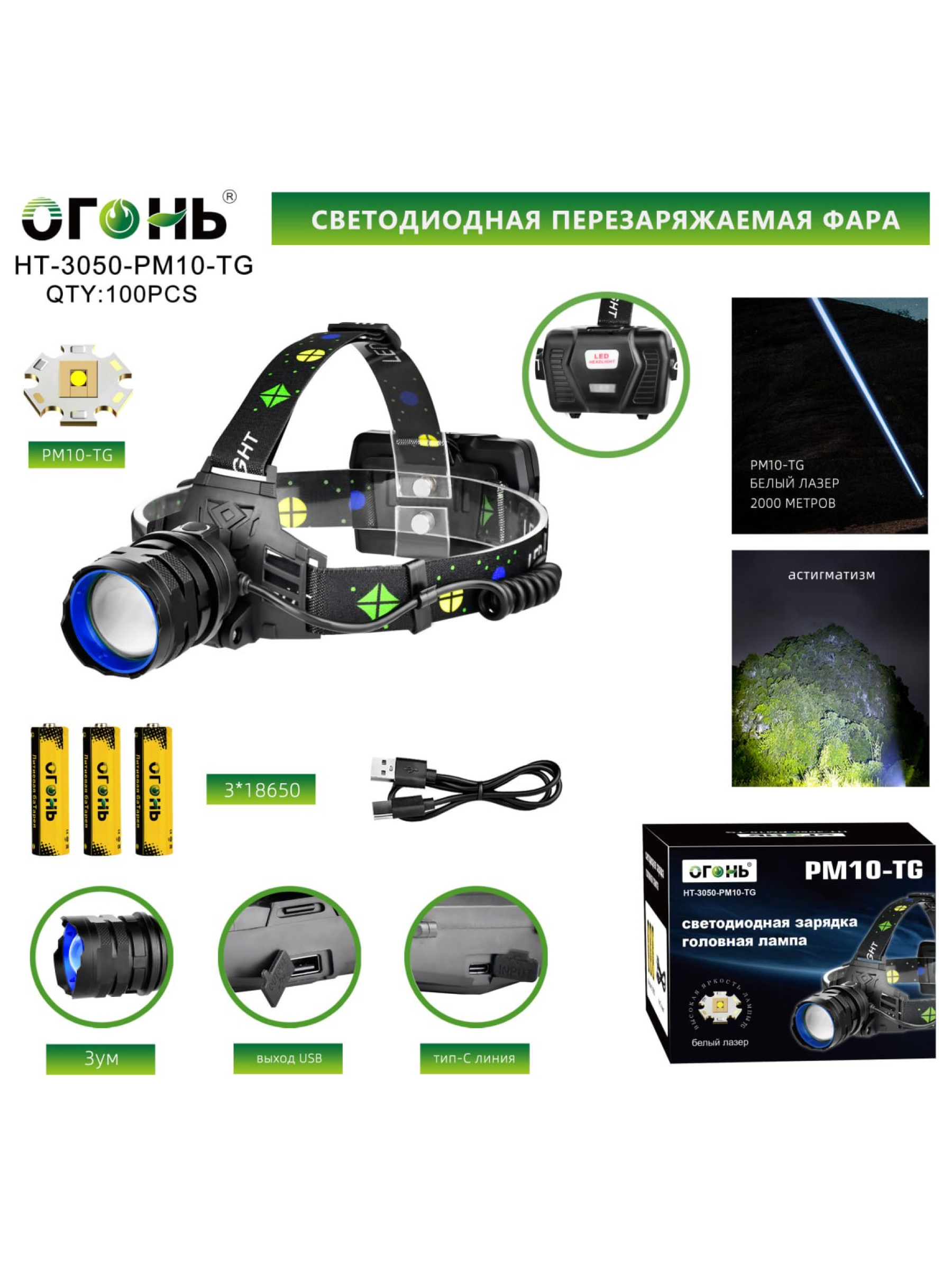 Фонарь налобный Огонь HT-3050-PM10-TG Zoom — это идеальный выбор для тех, кто требует мощного, надежного и многофункционального осветительного прибора, способного обеспечить яркое освещение в самых сложных условиях.