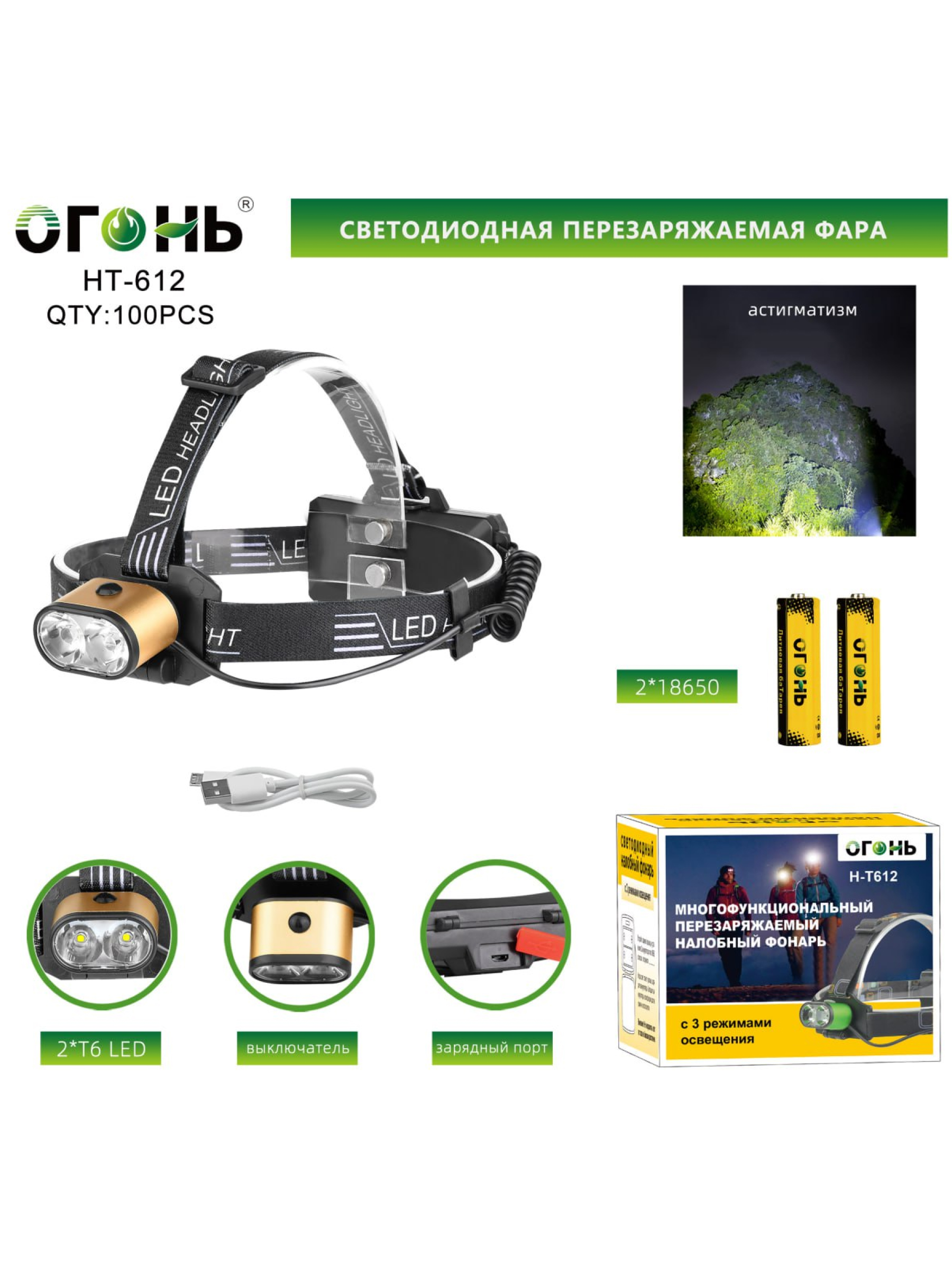 Представляем вам налобный фонарь Огонь HT-612 — надежное и компактное решение для тех, кто ценит яркое освещение и удобство в использовании. Этот светодиодный прибор оснащен двумя мощными светодиодами T6, которые обеспечивают яркий и равномерный светообразец, позволяя вам сохранять видимость даже в самых темных условиях.