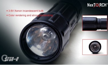 Фонарь GT6A-R - это легкий ксеноновый фонарь с обычной (не тактической) кнопкой включения используется в качестве обычного мощного фонаря. Он комплектуется блоком зарядки для аккумулятора и блоком подключения к сети с индикатором зарядки. Корпус фонаря изготовлен из прочного нейлонового материала, что делает его очень легким.