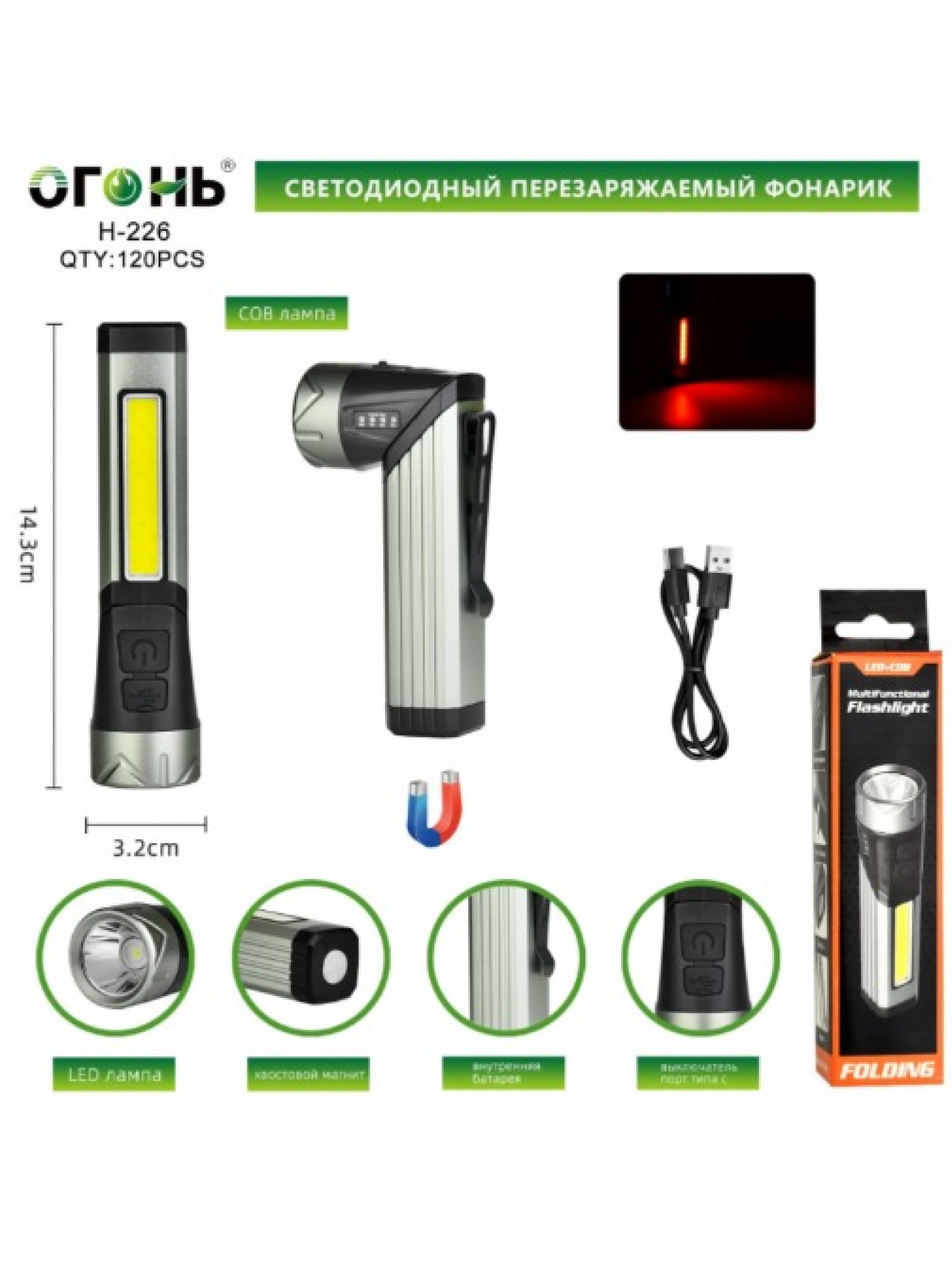 | Особенности: | COB подсветка на корпусе, хвостовой магнит, поворотная линза | |