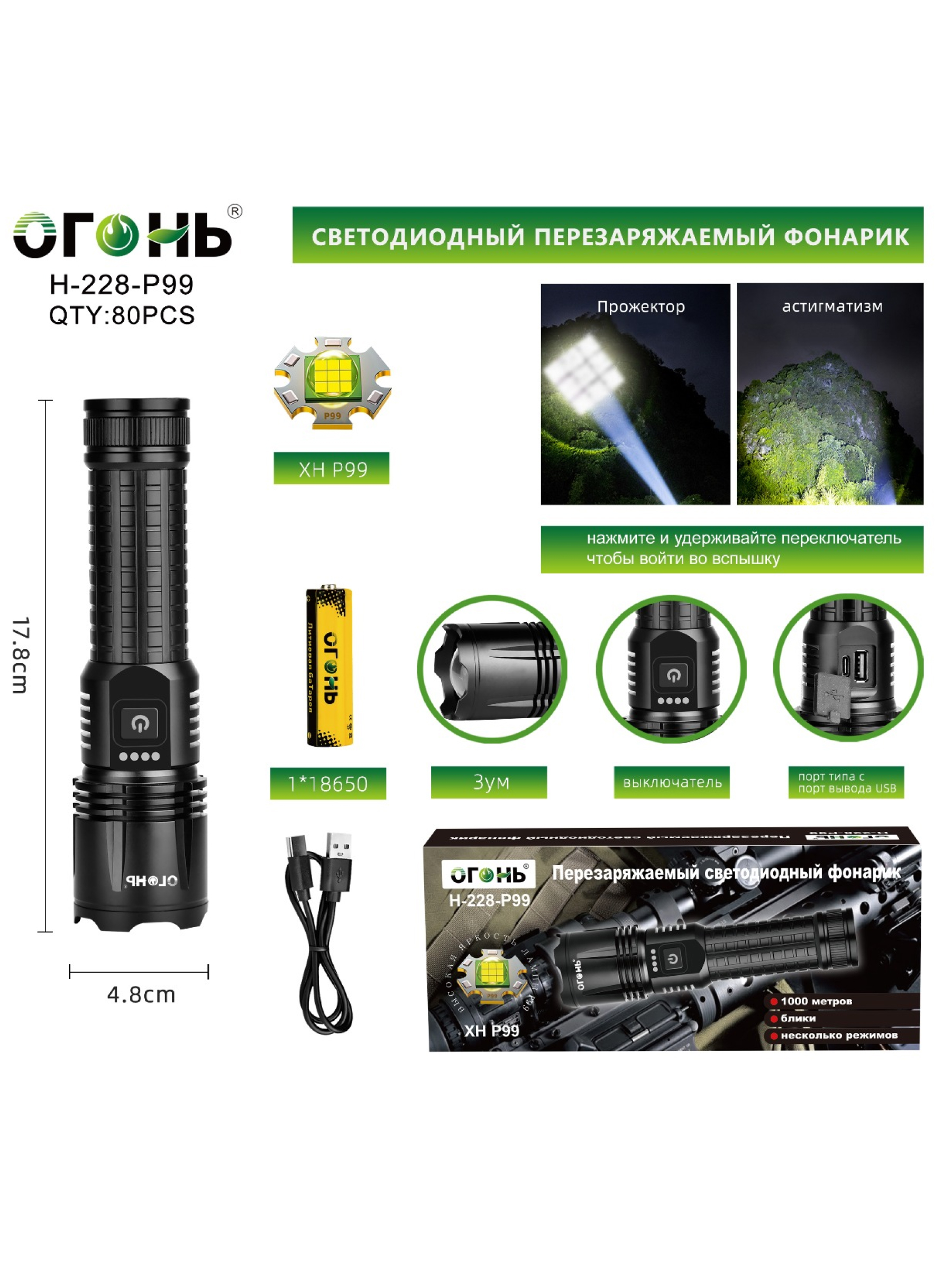 Представляем вам светодиодный тактический фонарь Огонь H-228-P99 Zoom — надежный и компактный инструмент для тех, кто ценит мощность, функциональность и удобство в одном устройстве. Этот карманный фонарь, созданный компанией Огонь из Китая, оснащён мощным источником света XH P99, способным освещать дальше, чем многие аналоги — до 1000 метров. Это делает его идеальным помощником для профессиональных задач, активного отдыха или чрезвычайных ситуаций.