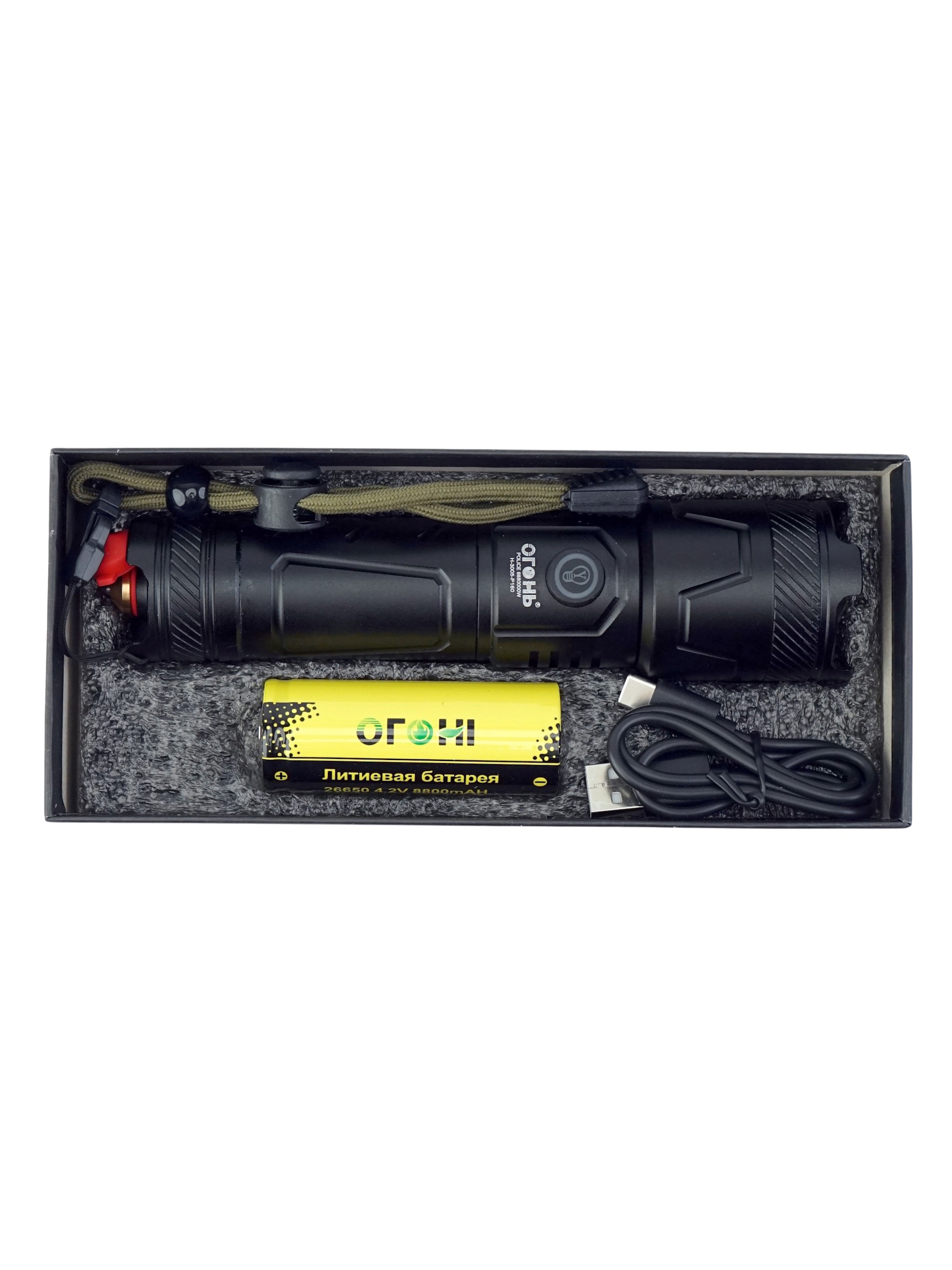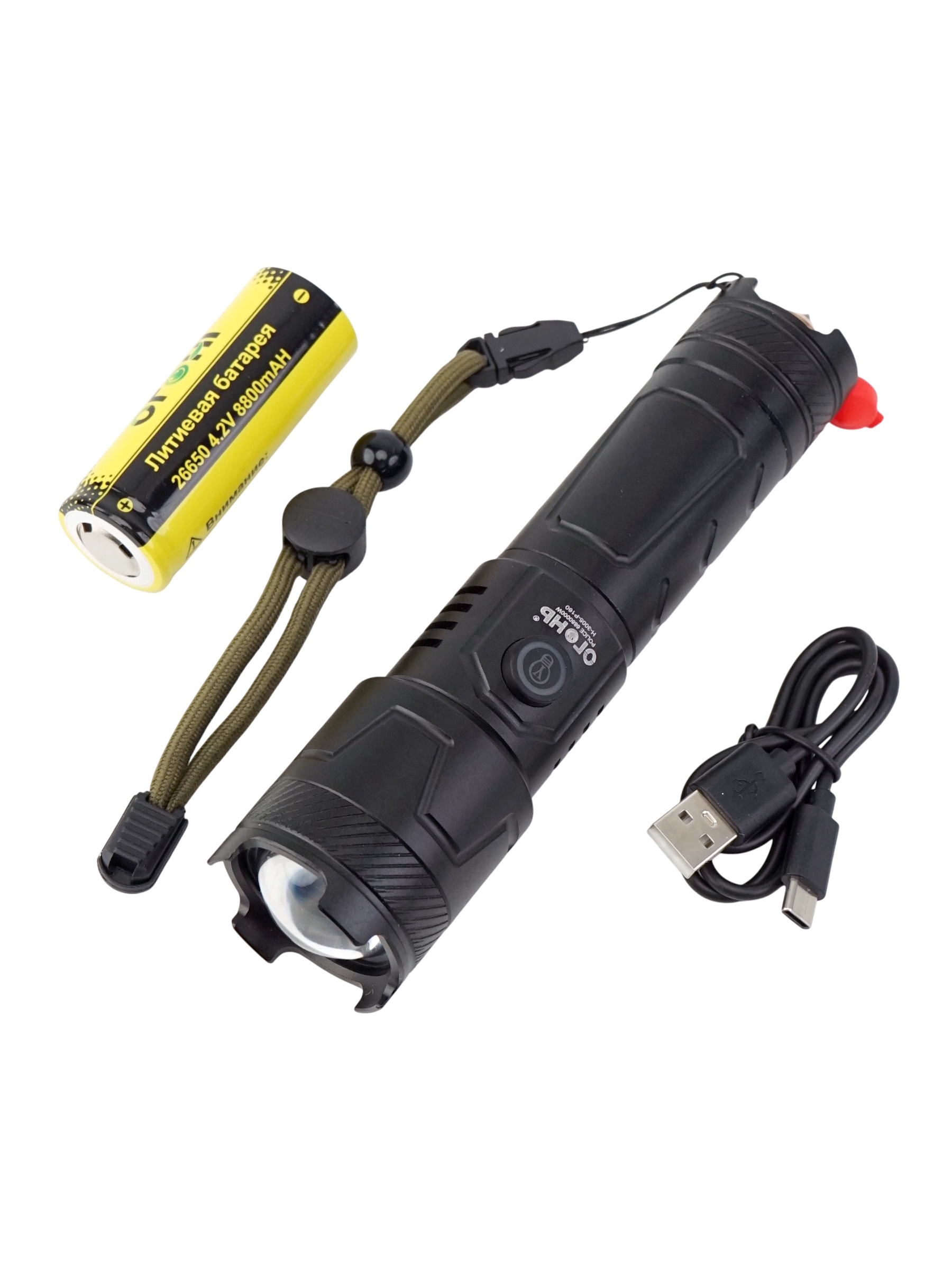 Работает устройство на одном аккумуляторе 26650, а быстрый и удобный заряд осуществляется через порт Type-C. В комплект входит сам фонарь, аккумулятор, кабель Type-C, инструкция и упаковка — всё, что необходимо для мгновенного начала эксплуатации.