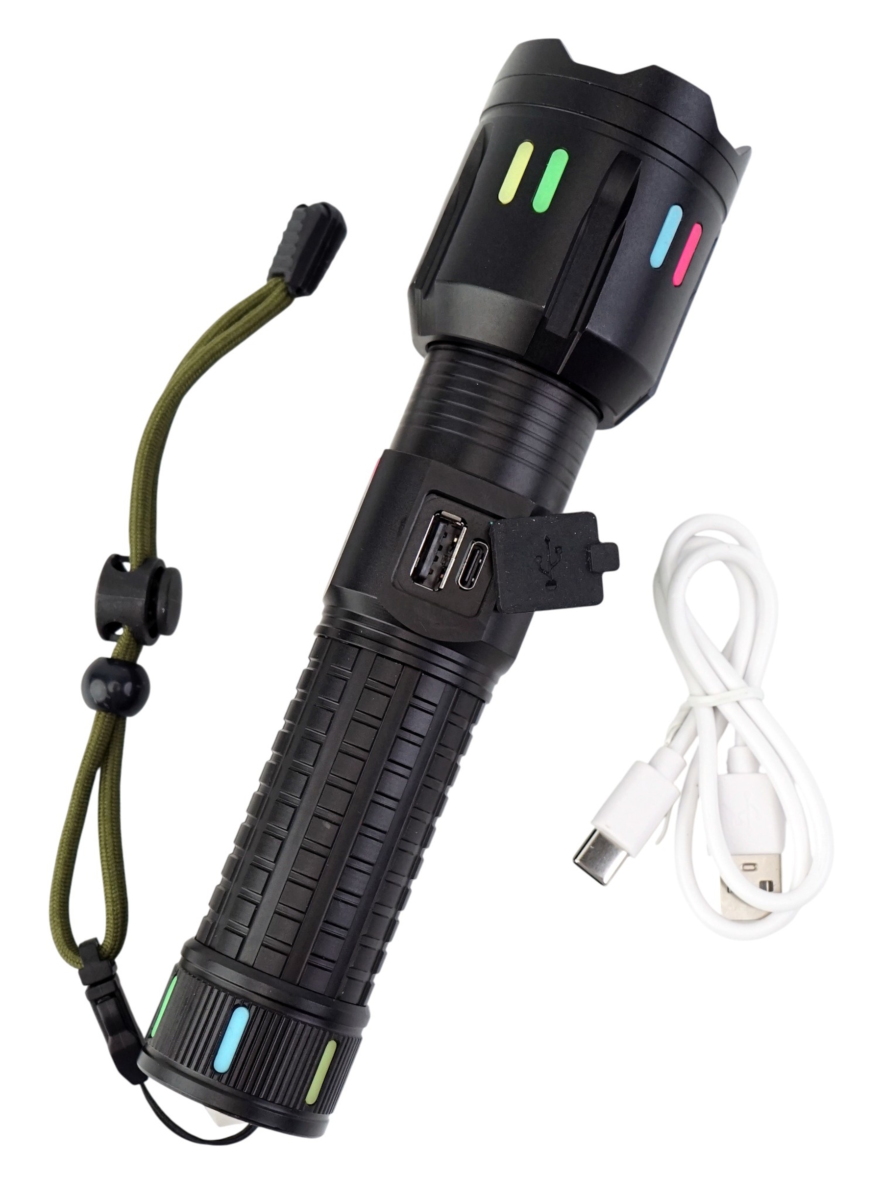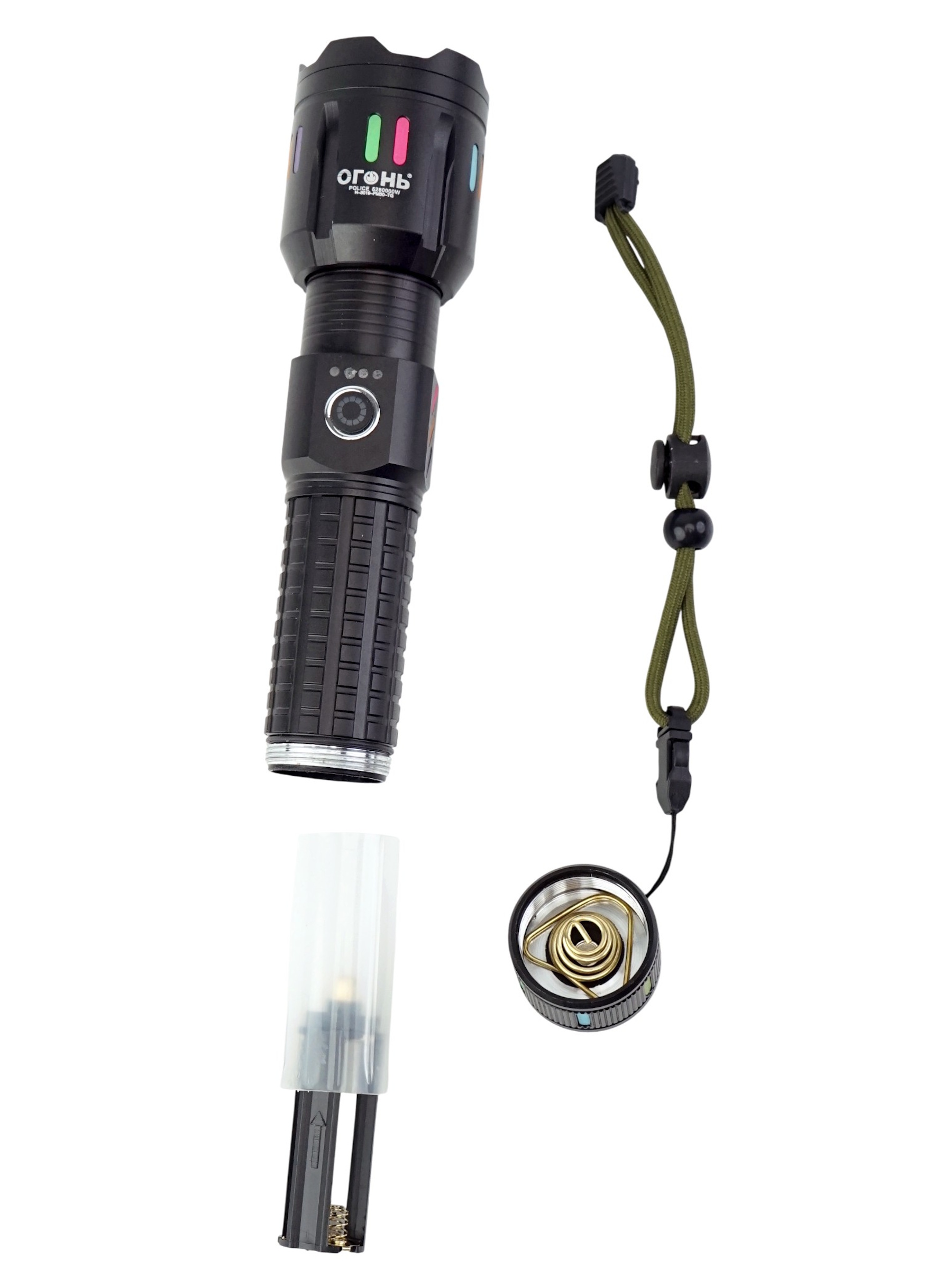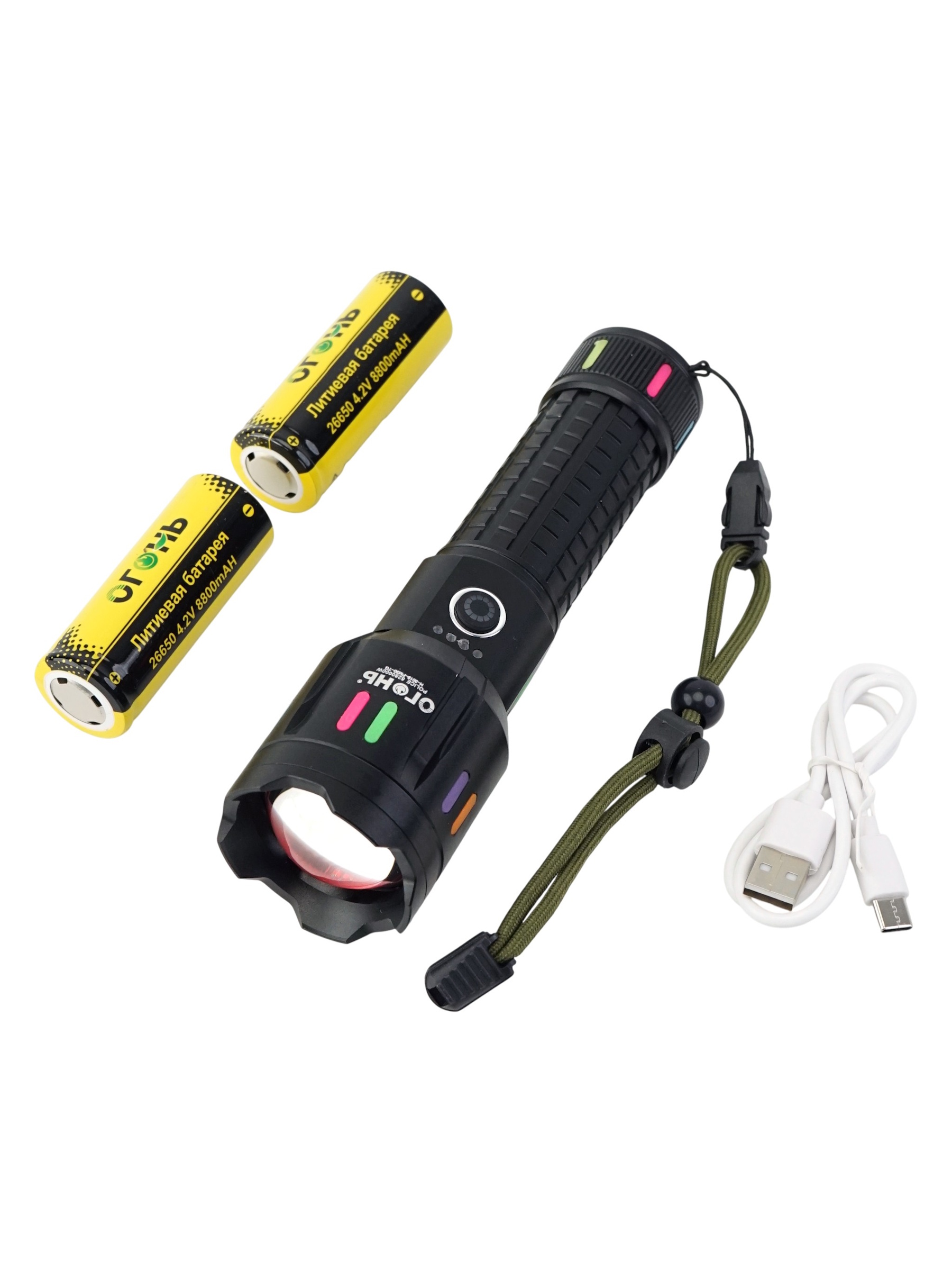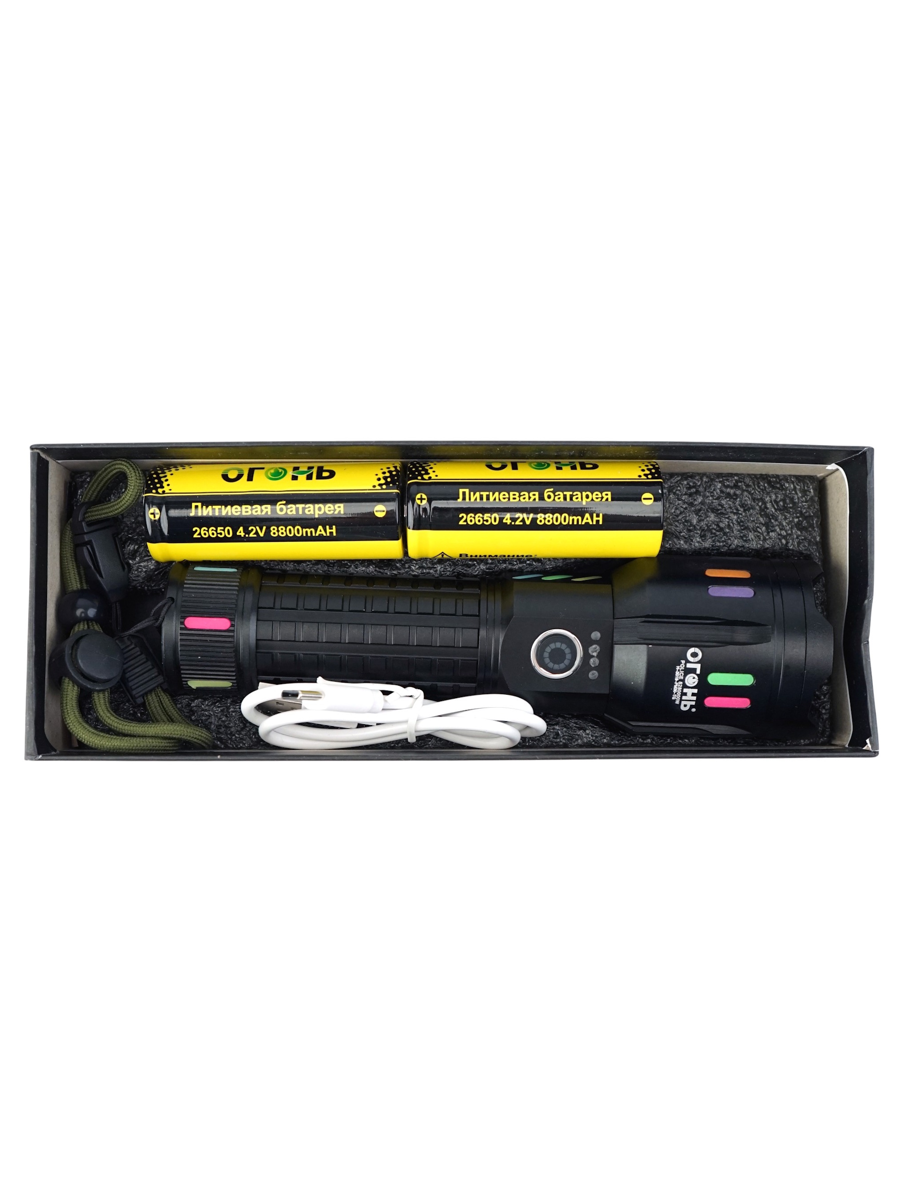Одной из его ключевых особенностей является наличие стеклобоя — прочного элемента, который позволяет использовать фонарь как оружейный стеклобой или для разрушения стекла в экстренной ситуации. Встроенная функция Powerbank позволяет заряжать мобильные устройства прямо во время работы, а индикация заряда помогает отслеживать уровень энергии батареи. Источник питания — аккумулятор формата 26650, зарядка осуществляется через современный порт Type-C, что обеспечивает быстрое и удобное пополнение энергии. В комплект входят сам фонарь, аккумулятор, кабель Type-C, инструкция и упаковка.