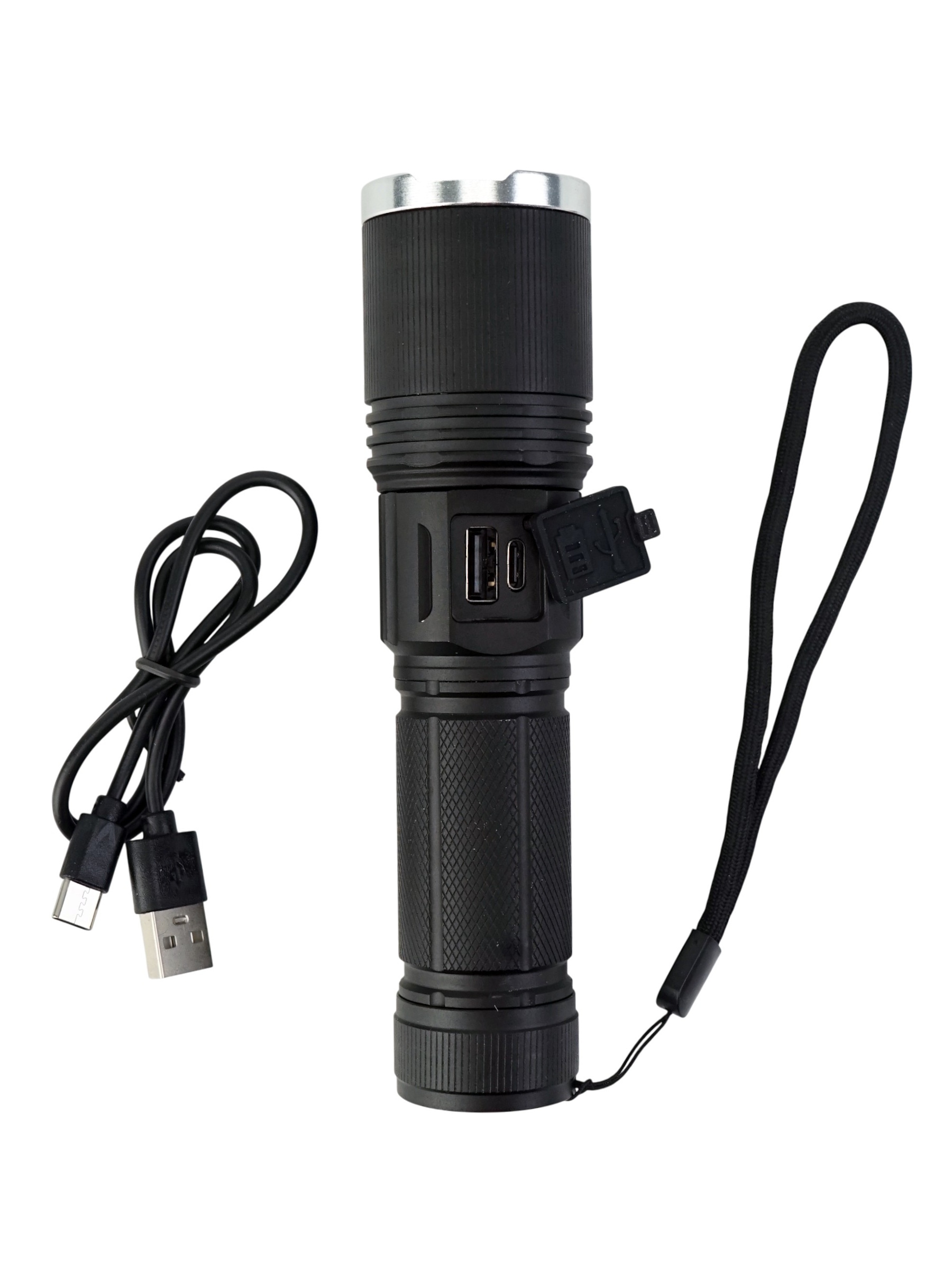 Зарядка осуществляется через современный порт Type-C, обеспечивающий быструю и удобную подзарядку. В комплект входит всё необходимое для быстрого начала использования: сам фонарь, аккумулятор, кабель Type-C, инструкция и стильная упаковка.