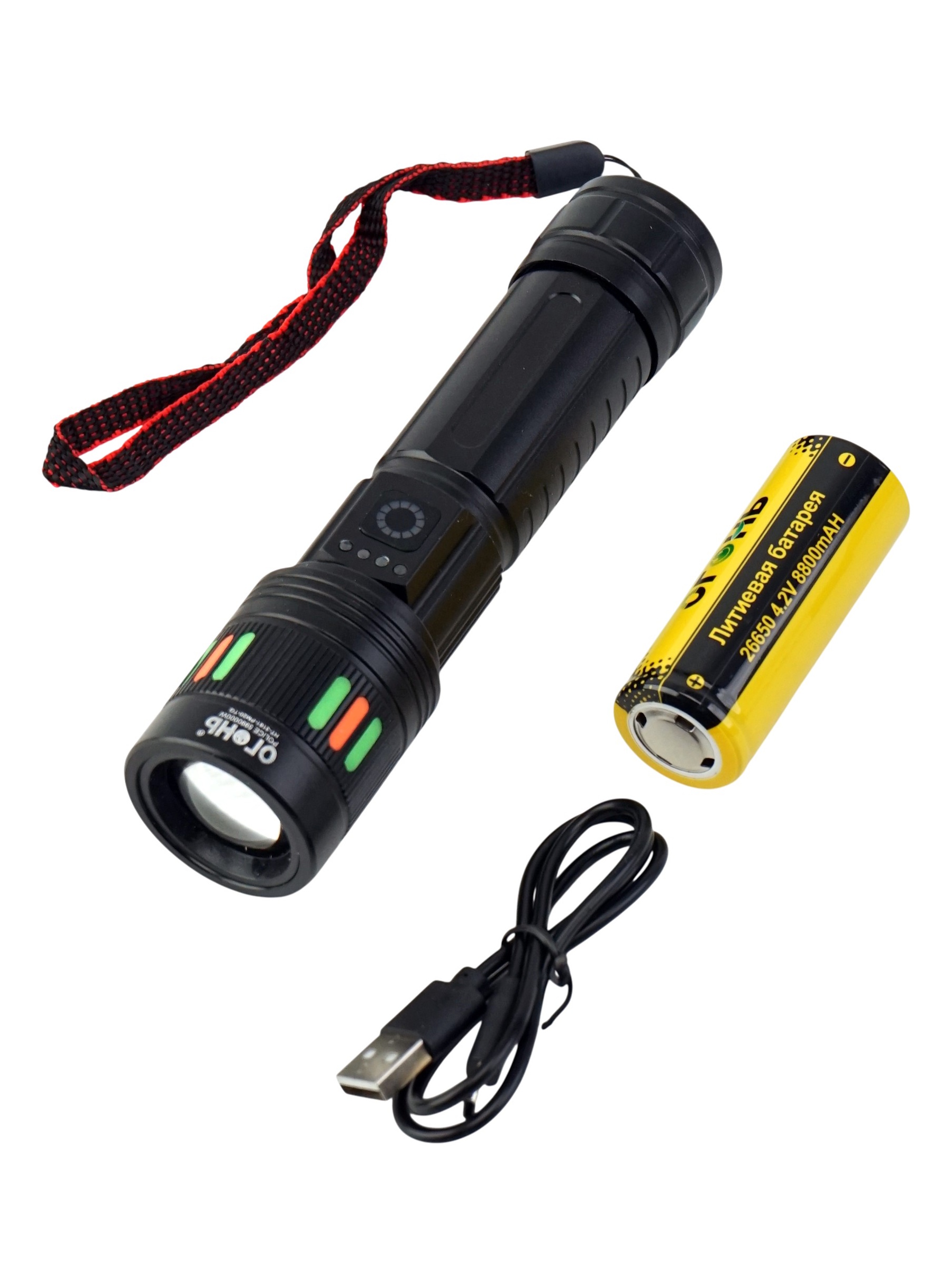 Модель использует источник света PM20-TG и оснащена встроенным аккумулятором типа 26650, что обеспечивает продолжительную работу и надежность. Управление осуществляется через современный порт Type-C, который обеспечивает быструю зарядку и удобство в использовании. Встроенная индикация заряда позволяет всегда контролировать уровень энергии и своевременно подзаряжать устройство, чтобы оно было готово к любым ситуациям. В комплект входит сам фонарь, аккумулятор, кабель Type-C, инструкция и стильная упаковка — всё, что нужно для быстрого и комфортного начала эксплуатации.