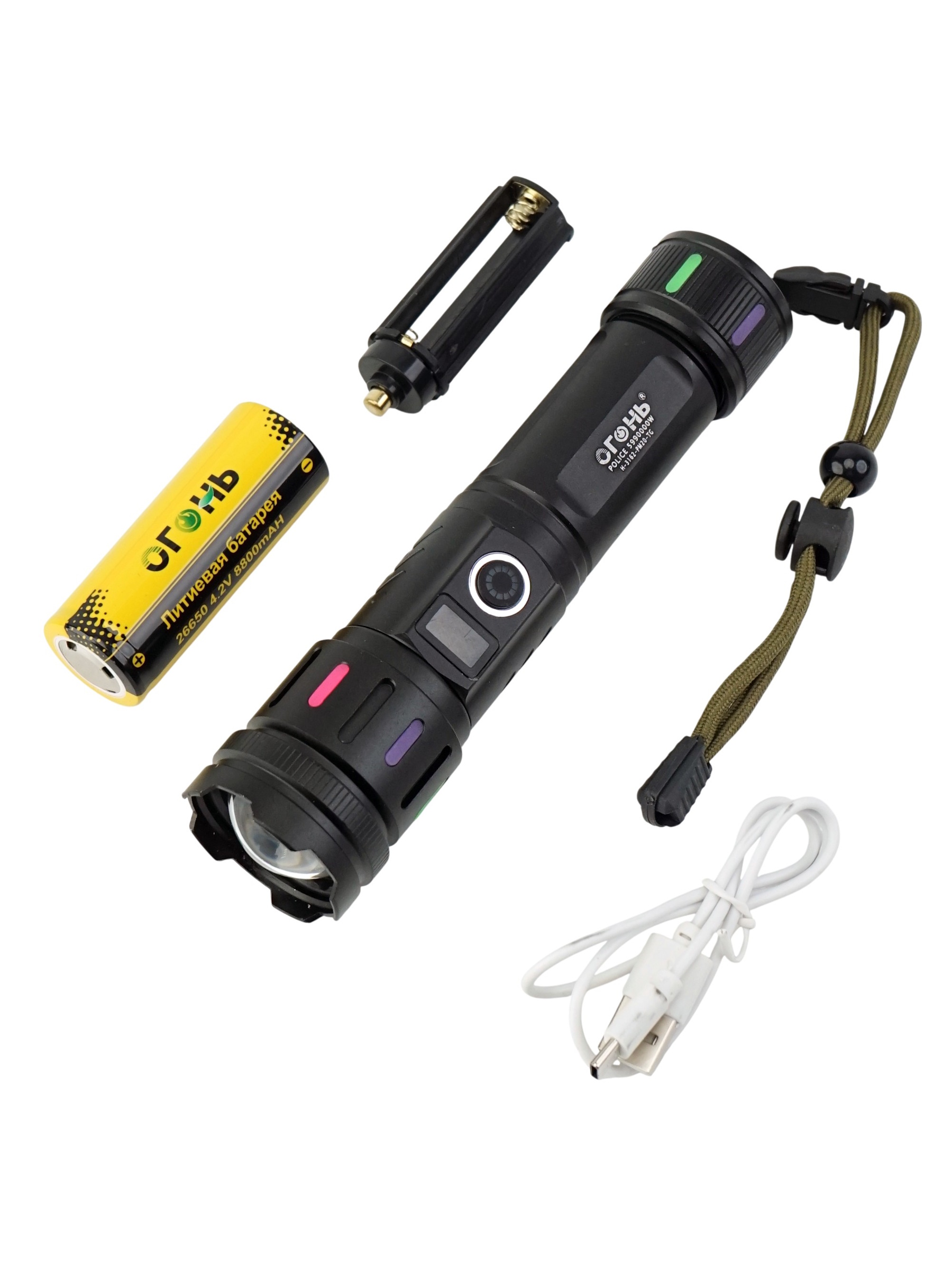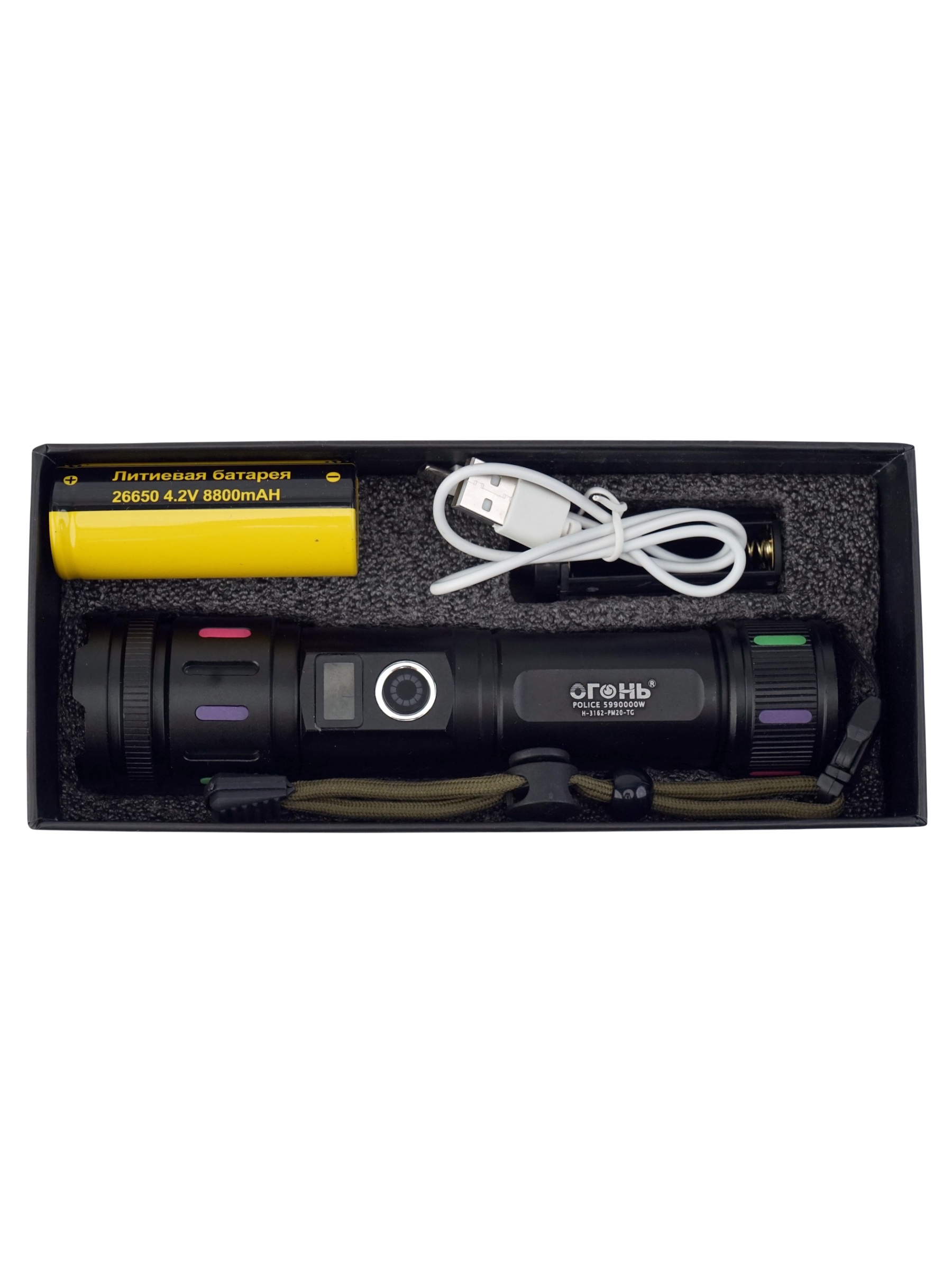 Модель использует источник света PM20-TG и оснащена встроенным аккумулятором типа 26650, что обеспечивает продолжительную работу и надежность. Управление осуществляется через современный порт Type-C, который обеспечивает быструю зарядку и удобство в использовании. Встроенная индикация заряда позволяет всегда контролировать уровень энергии и своевременно подзаряжать устройство, чтобы оно было готово к любым ситуациям. В комплект входит сам фонарь, аккумулятор, кабель Type-C, инструкция и стильная упаковка — всё, что нужно для быстрого и комфортного начала эксплуатации.