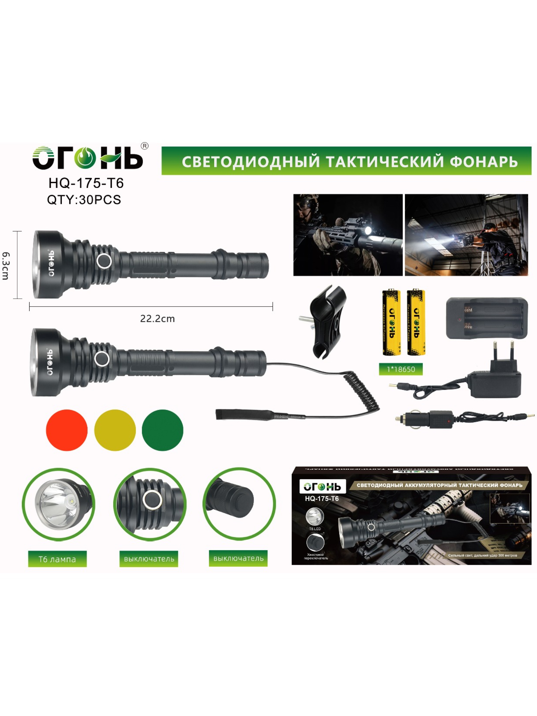 Представляем вам подствольный светодиодный фонарь Огонь HQ-175-T6 — мощное и надежное решение для тактических операций, охоты и охранных задач. Этот ручной, карманный фонарь выполнен из прочного алюминиевого сплава, что обеспечивает долговечность и влагозащищенность корпуса, позволяя использовать его в самых суровых условиях. Размеры 222 х 63 мм и диаметр корпуса 25 мм позволяют легко установить его на оружие или носить в руке, а вес около 395 граммов делает его достаточно устойчивым, чтобы не мешать при ведении огня.