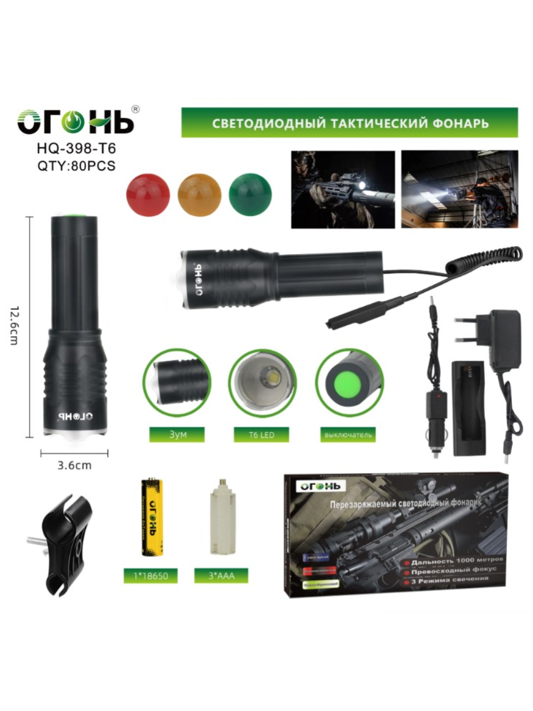 Современный дизайн, мощность, многофункциональные режимы и возможность использования различных источников питания делают Огонь HQ-398-T6 Zoom незаменимым помощником для тех, кто ценит качество, надежность и универсальность в любых условиях.