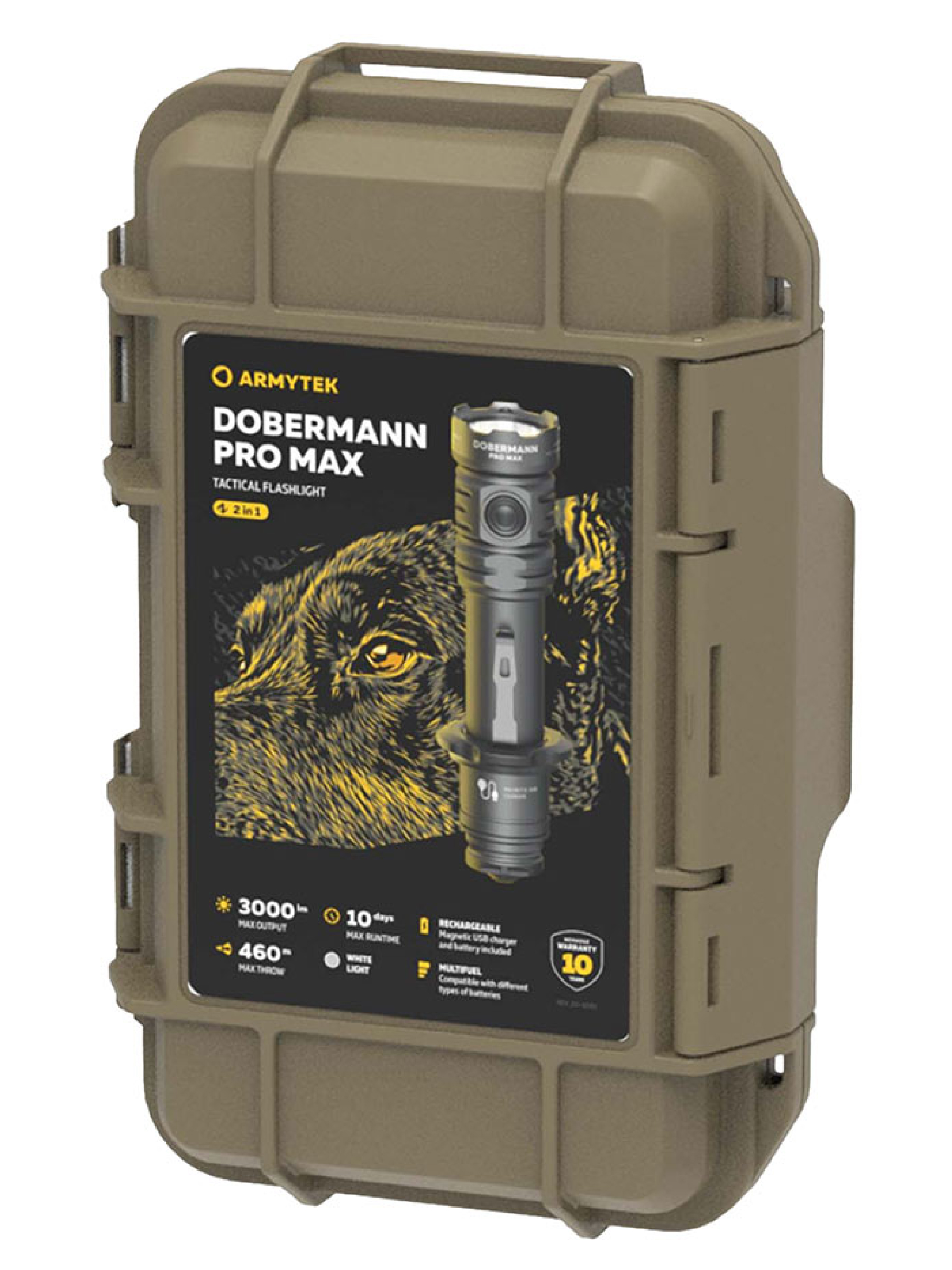 Мощный тактический фонарь Armytek Dobermann Pro Max с впечатляющей яркостью 3000 люмен и дальностью освещения до 460 метров — идеальное решение для профессионалов, ценящих надёжность: компактный корпус, бесшумная двухуровневая кнопка и магнитная USB-зарядка делают его незаменимым помощником как в тактических операциях, так и в повседневной жизни.