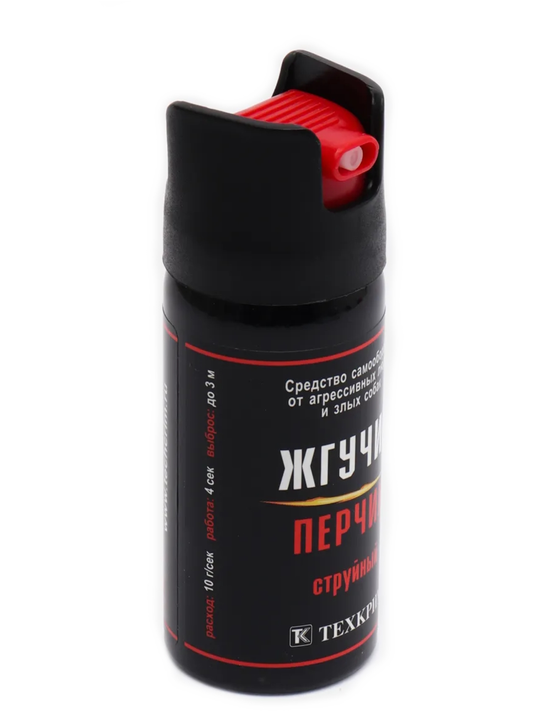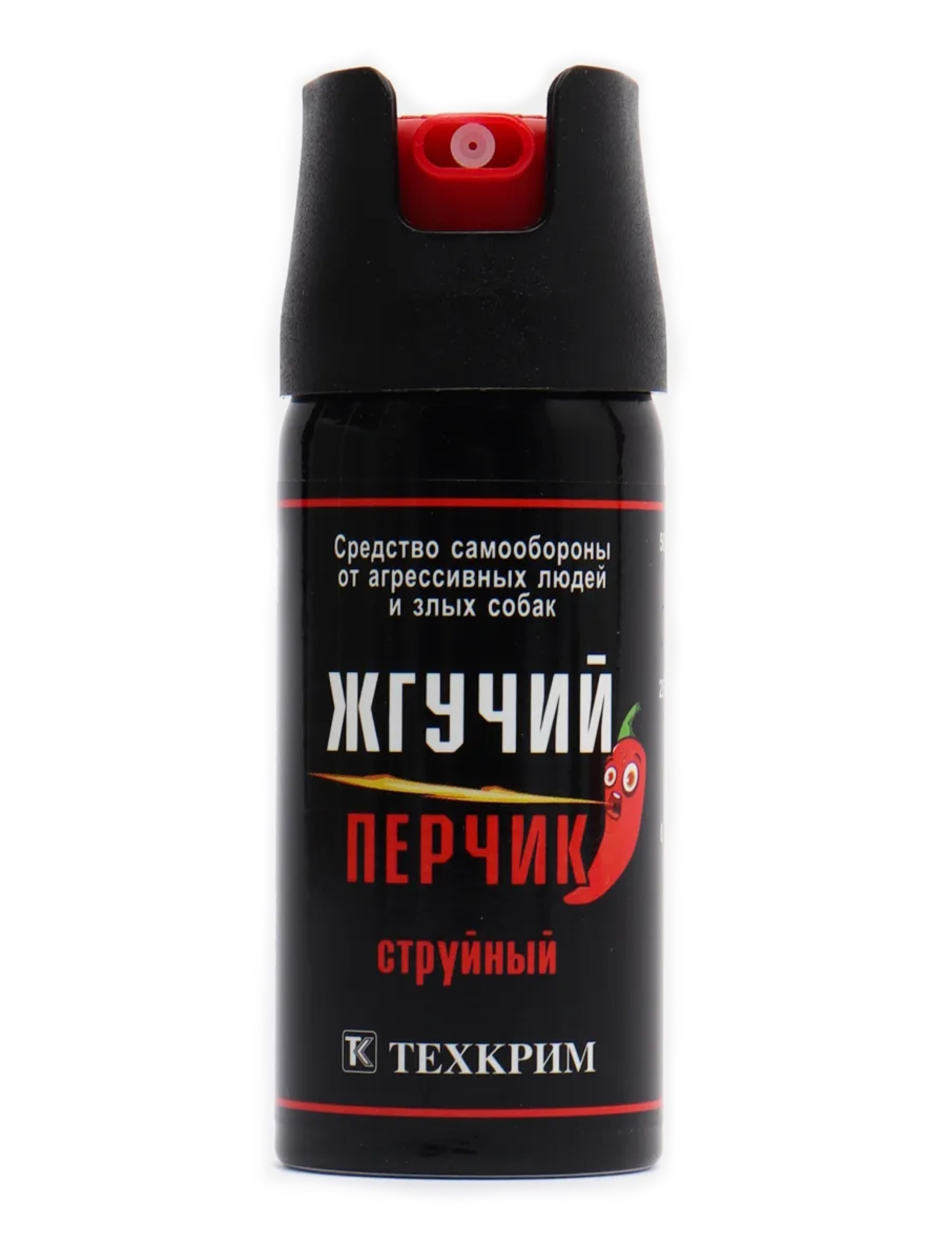 Изделие Жгучий Перчик, 65 мл производится компанией «Техкрим» в г. Ижевск и содержит большой процент вещества олеорезинкапсикум (ОС) или проще – экстракта жгучего перца, также в жидкости присутствует морфолидпеларгоновой кислоты. Данное вещество также оказывает пугающее действие на собак и обладает слезоточивым и раздражающим действием с жжением кожи, действием на верхние дыхательные пути, а с веществом CS к вышеперечисленному добавляется боль в глазах.