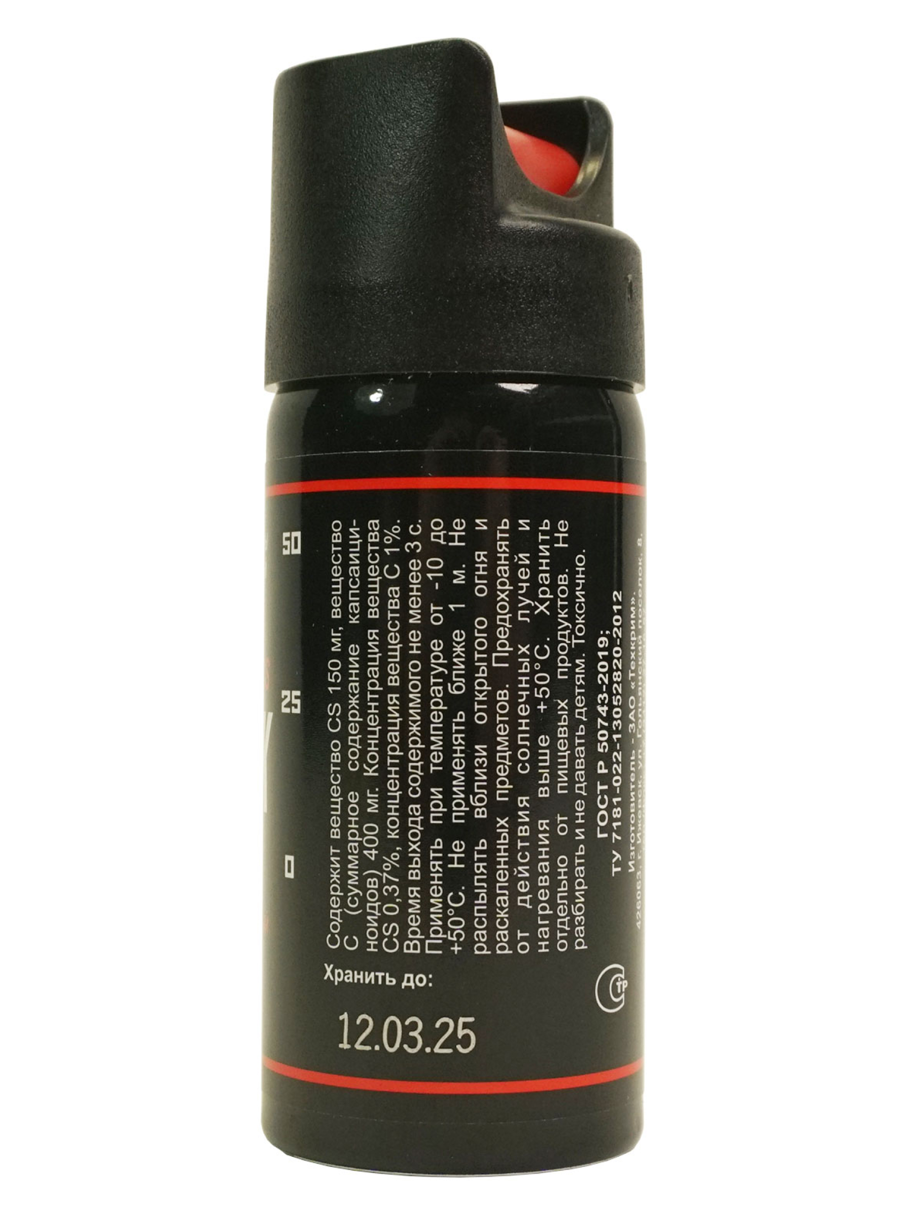 Содержимое баллончика Black состоит из следующих раздражающих слезоточивых веществ: 95% натурального экстракта жгучего перца или олеорезинакапсикума (ОС) и 0,38% полицейского ирританта (CS). Последний при попадании на лицо оказывает влияние на глаза и дыхательные пути, а экстракт жгучего перца помимо вышеперечисленного раздражает носоглотку, вызывает сильный кашель и дыхательные смазмы.