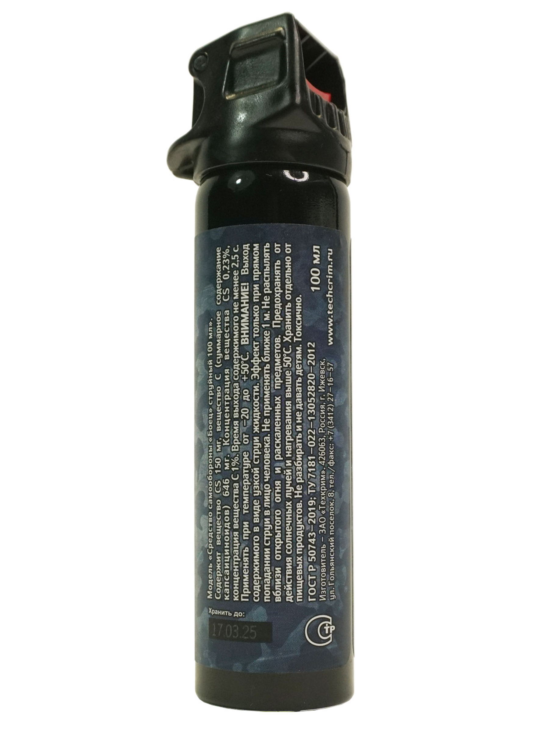 Описание газового (перцового) баллончика «Боец» струйный, 100 мл: