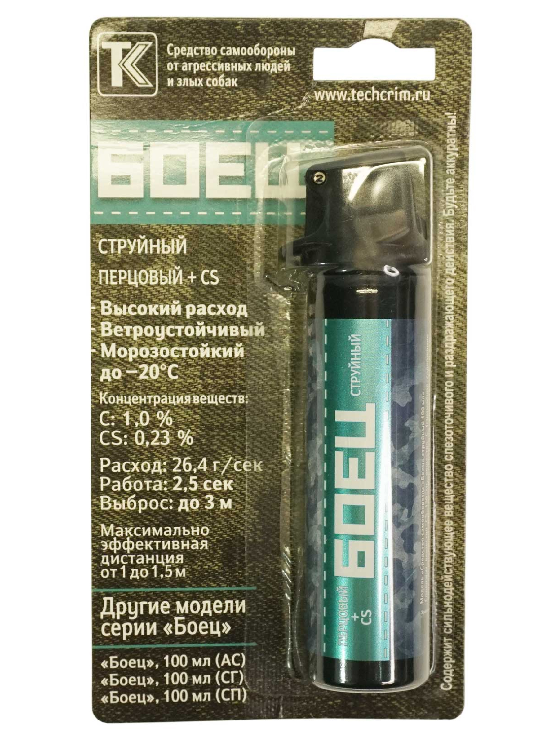 Газовый баллончик «Боец» струйный, 100 мл – это новая разработка отечественного производителя «Техкрим», специализирующегося, помимо прочего, на выпуске средств самообороны. Струйный баллончик «Боец» относится к последнему поколению жидкостно-струйных средств самозащиты, и имеет более высокие поражающие и тактические характеристики, чем большинство ранее выпускаемых аналогов.
