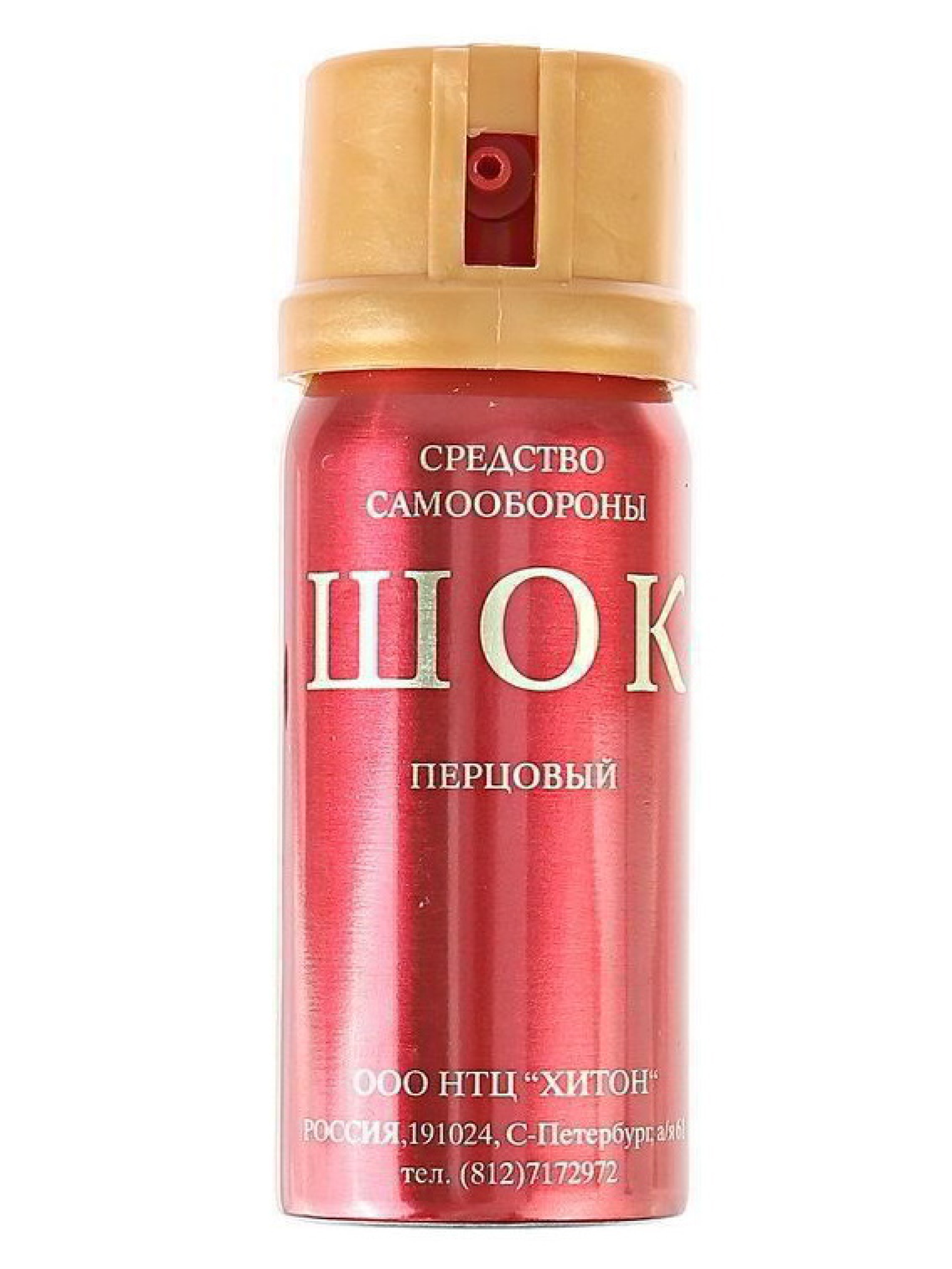 Газовый (перцовый) баллончик Шок, 65 мл является хорошим средством при самообороне от хулиганов либо агрессивных собак. Изделие производится в С-Петербурге НТЦ «Хитон». Еще в 90-е годы 20-го века данное средство являлось лидером среди газовых баллончиков российских производителей.