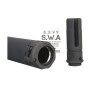 Представленная модель глушителя BD0510 от компании Big Dragon (Китай) подходит для моделей M4/M16 серии. Образец выполнен в гладком корпусе из высокопрочного алюминиевого сплава, длина 215 мм, а внешний диаметр глушителя составляет 30 мм. Устанавливается на стандартную резьбу 14-.