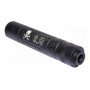 Представленная модель глушителя HY147F от компании Cyma (Китай) подходит для большинства моделей страйкбольного оружия. Образец выполнен в гладком корпусе из высокопрочного алюминиевого сплава, длина 145 мм, а внешний диаметр глушителя составляет 30 мм. Устанавливается на стандартную резьбу 14-.