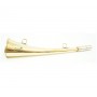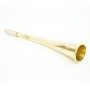 Горн длиной 25 см из латуни с пищиком предназначен для подзыва охотничьей собаки. Встроенный пищик освобождает от необходимости учиться правильно извлекать звук. Каждый охотничий рог имеет индивидуальный тон. На горне есть эмблема в виде головы кабана.