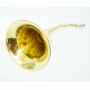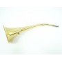 Горн длиной 45 см из латуни с пищиком предназначен для подзыва охотничьей собаки. Встроенный пищик освобождает от необходимости учиться правильно извлекать звук. Каждый охотничий рог имеет индивидуальный тон. На горне есть эмблема в виде головы кабана.