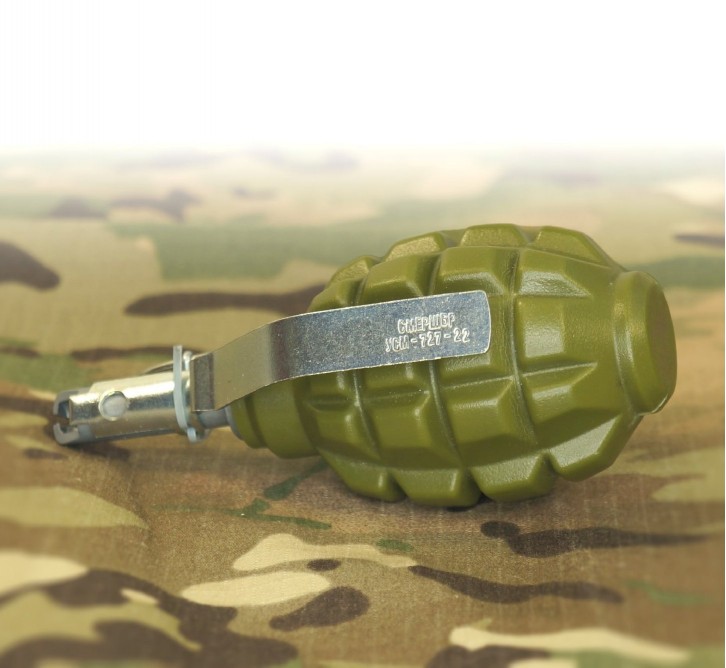 Учебная пиротехническая граната СМЕРШ ВР Ф-1(МГ 4), предназначена для использования в качестве учебного пособия при учебной практике навыкам обращения с боевыми ручными гранатами, может использоваться при проведении военно-спортивных игр (пейнтбол или страйкбол), а также при проведении военно-исторических реконструкций и тренировок силовых структур.