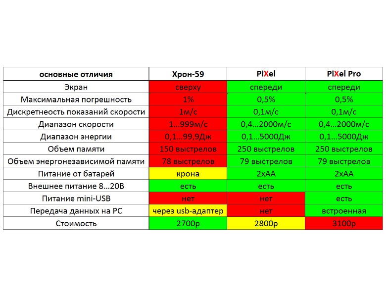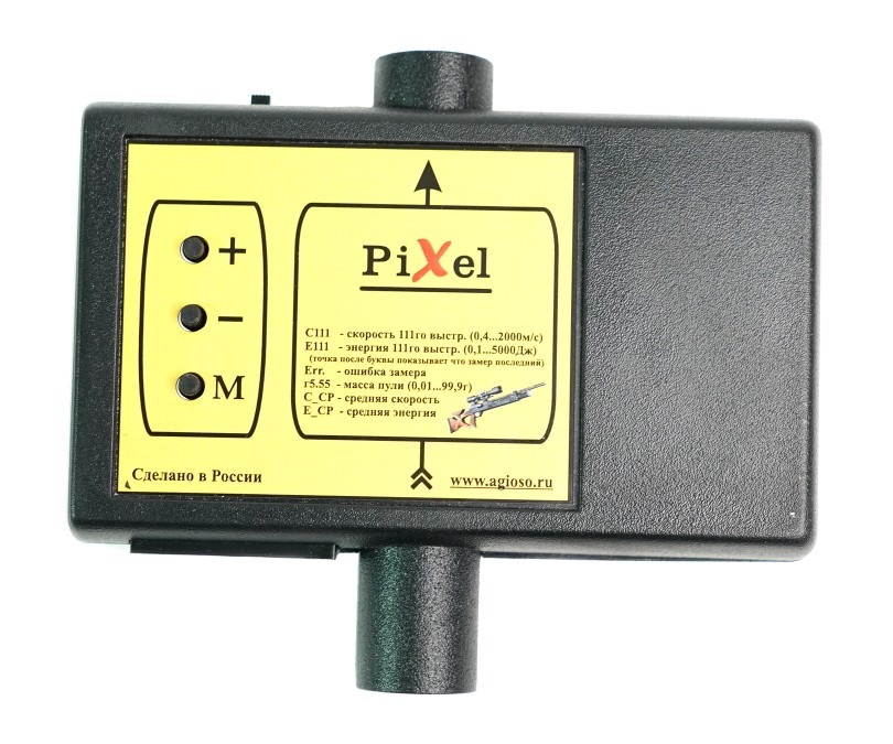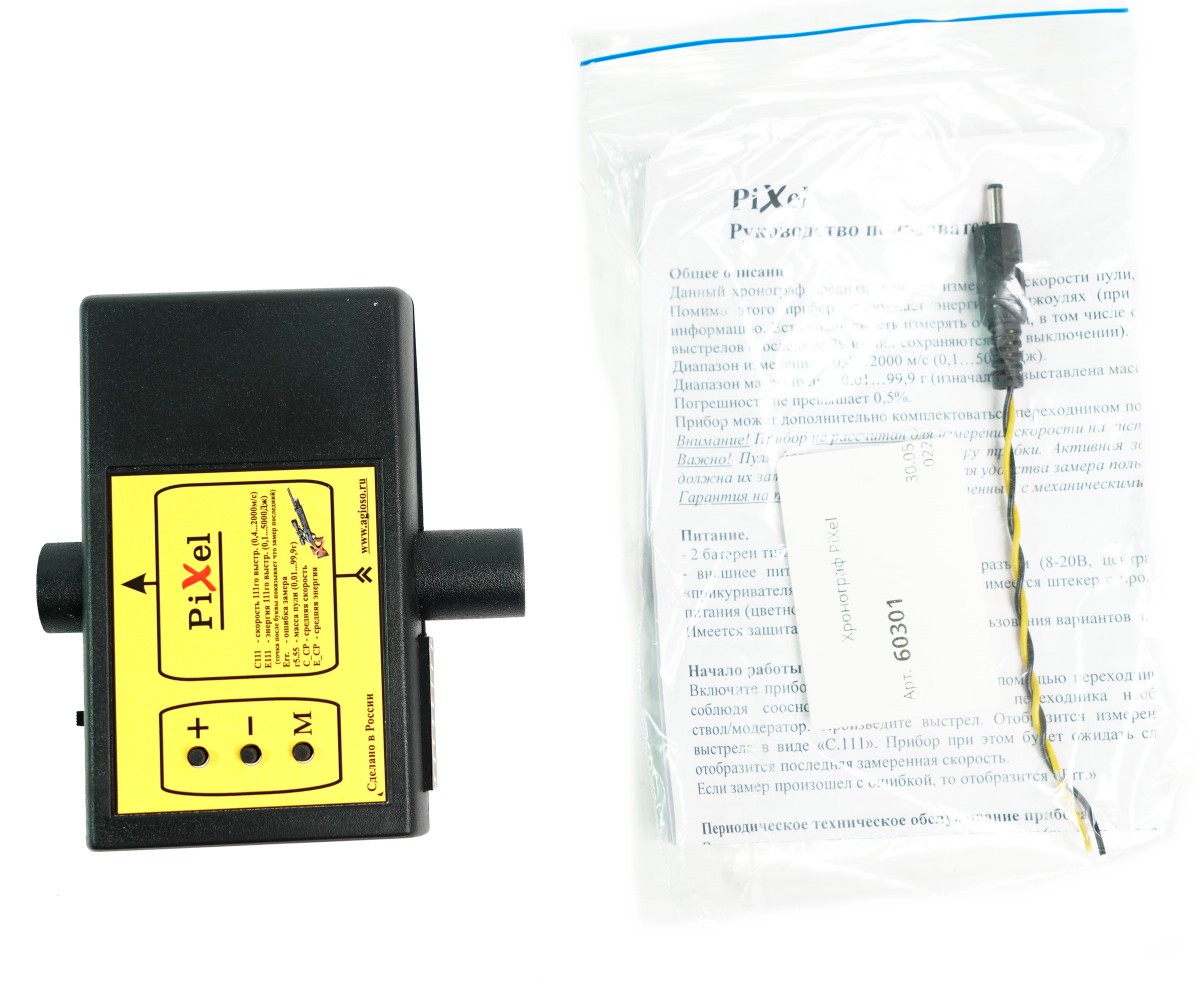 Хронограф "Pixel" предназначен для измерения начальной скорости пули пневматического оружия. Тип - оптический, то есть фиксирует любое тело (будь то свинец, сталь или пластик), прошедшее по центру трубки прибора.