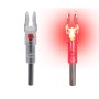 Хвостовики для лучных стрел с включающейся подсветкой красного спектра. Время работы в непрерывном режиме - 72 часа. Источник питания - встроенный аккумулятор. Источник света - диод. Свечение включается и выключается специальным переключателем сбоку хвостовика с помощью микро-отвертки, входящей в комплект. Также имеется режим автоматического включения с помощью кнопки расположенной в прорези хвостовика. Кнопка нажимается в момент выстрела из лука.