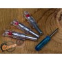 Хвостовики для арбалетных стрел с включающейся подсветкой красного спектра. Время работы в непрерывном режиме - 72 часа. Источник питания - встроенный аккумулятор. Источник света - диод. Свечение включается и выключается специальным переключателем сбоку хвостовика с помощью микро-отвертки, входящей в комплект. Также имеется режим автоматического включения с помощью кнопки расположенной в прорези хвостовика. Кнопка нажимается в момент выстрела из арбалета.