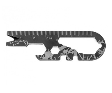 Набор функций: | - плоская отвертка - скребок / гвоздодер - линейка (6 см) - открывалка для бутылок - гаечный ключ - велосипедный ключ - торцевой ключ (держатель бит) - 6-позиционный гаечный ключ - возможность крепления темляка, кольца для ключей, карабина |
