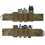 Тактический пояс EmersonGear имеет эластичную зону для размещения снаряжения, выполненную из ткани саржевого плетения. Пояс состоит из двух частей (левая и правая), каждая из которых имеет 4 отделения с ограничителями снизу размером 75 мм и 90 мм соответственно. Это позволяет надежно и быстро размещать и извлекать стандартное тактическое снаряжение, такое как магазины, рации и гранаты. Передняя и задняя части пояса крепятся с помощью липучек, а эластичный материал обеспечивает комфортную посадку.