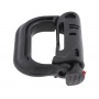 Пластиковый карабин, способный раскрываться пополам. За счет специальной прорези в корпусе, он может закрепляться на 25 мм стропе PALS или креплении MOLLE. Применяется для крепления подсумков, снаряжения и экипировки на нейлоновые ремни, ремневые крепления или аналогичные по назначению конструкции (шнуры, веревки, стропы и т.д.).
