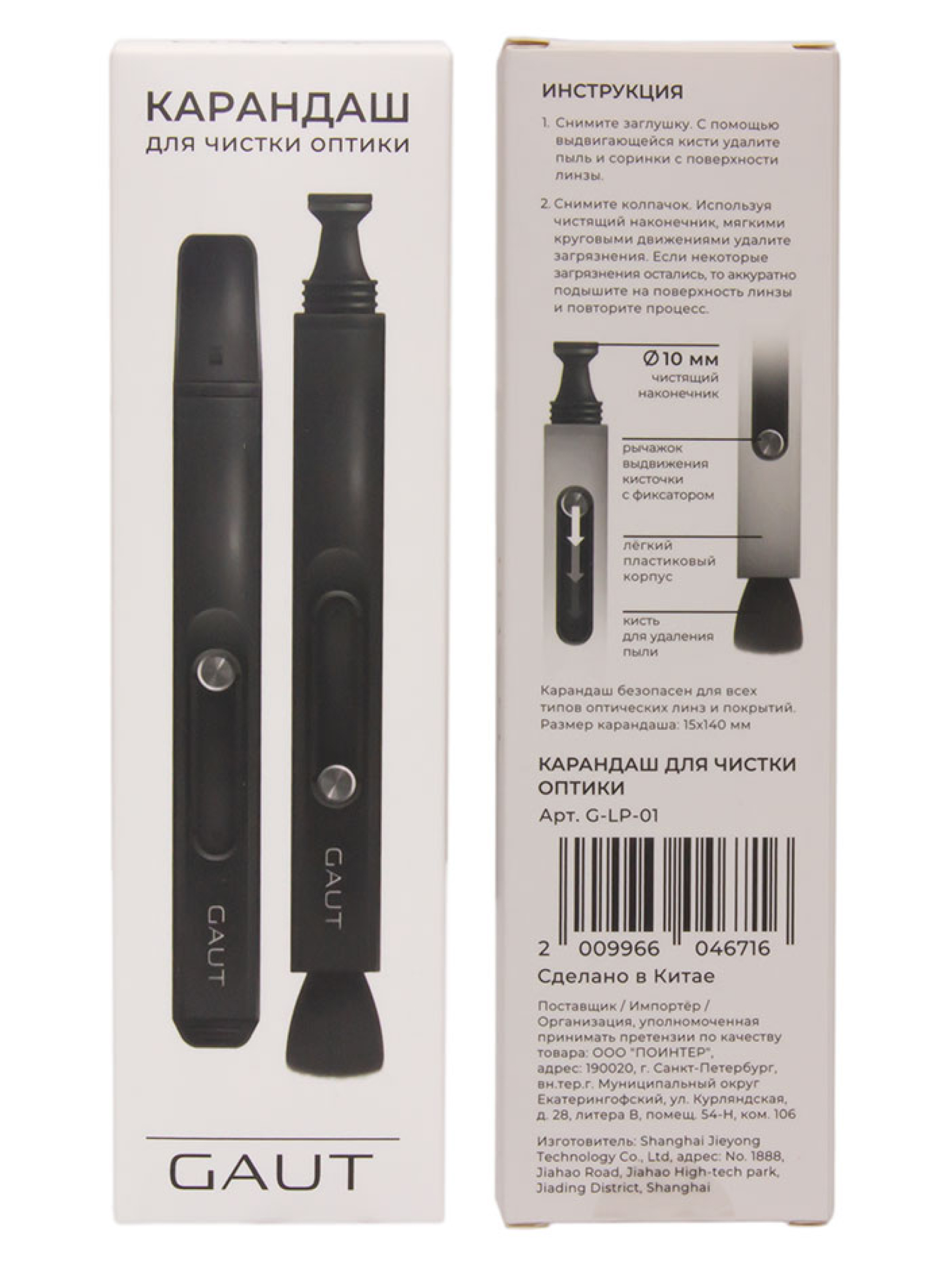 Карандаш Gaut — это простое и эффективное решение для поддержания чистоты оптических приборов: очки, камеры, бинокли, оптические прицелы.