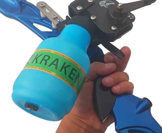 Катушка Kraken представляет собой наиболее простой и утилитарный тип катушек для боуфишинга: линь собирается в специальной пластиковой колбе, а механизм возврата линя осуществляется с помощью обрезиненного валика с рычажным прижимным механизмом. Этот же рычаг отвечает за предотвращение обратного хода линя и его фиксацию. Подобная конструкция была разработана американской компанией AMS много лет назад и выпускается до сих пор без значительных технических изменений.