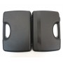 Изготовлен из полипропилена. Внутри наполнитель – вспененный волнистый поролон для более универсального использования кейса. Имеет 2 защёлкивающихся замка.
