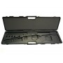 Изготовлен из пластика. Внутри( на верхней половинке) наполнитель – поролон. А в нижней половинке имеется специальная термоформа для удобного размещения оружия и аксессуаров в кейсе. Имеет 4 скользящих замка.