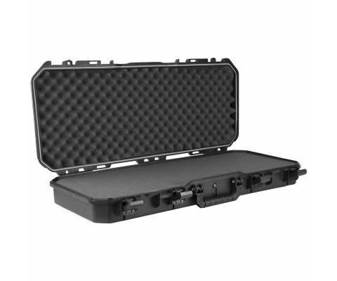 Кейс выполнен из сверхпрочного полимерного корпуса черного цвета с герметичной системой запирания. Предназначен для хранения или транспортировки 1-й единицы оружия размером до 36" (97,5 см.), а также несколько сопутствующих аксессуаров.