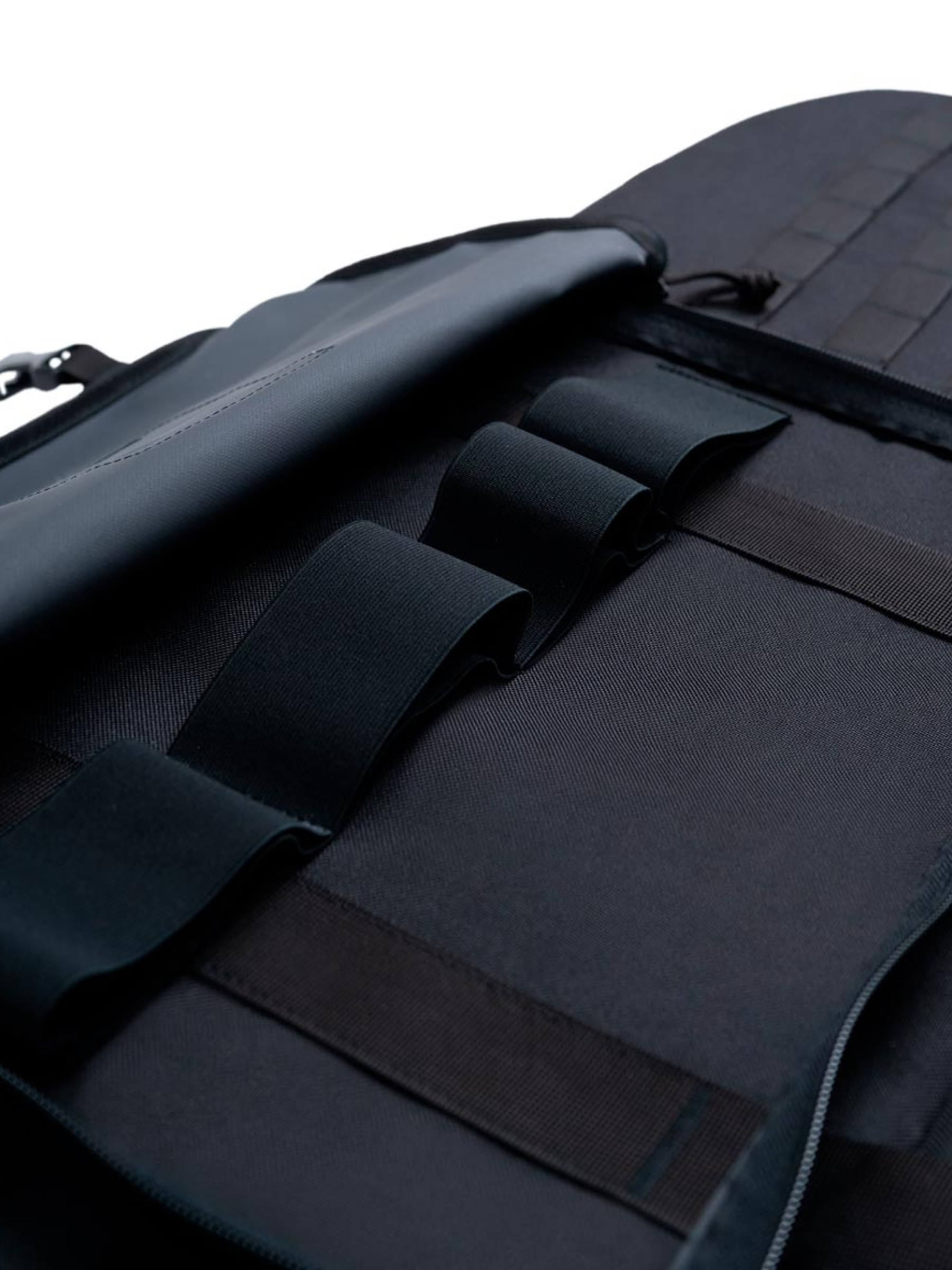 Чехол Vektor A-100 можно носить двумя способами: на плечах, как рюкзак, и в руках. Для этого предусмотрены плечевые лямки, которые при ненадобности можно снять, и ручки. В комплекте идут дополнительные ремни, которые позволят уменьшить размеры чехла или прикрепить дополнительное снаряжение.